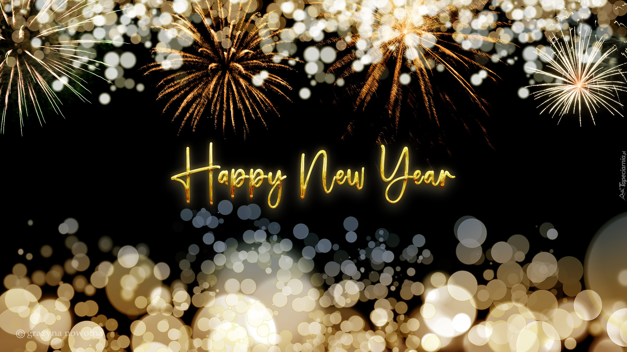 Edytor tapety: Fajerwerki nad napisem Happy New Year