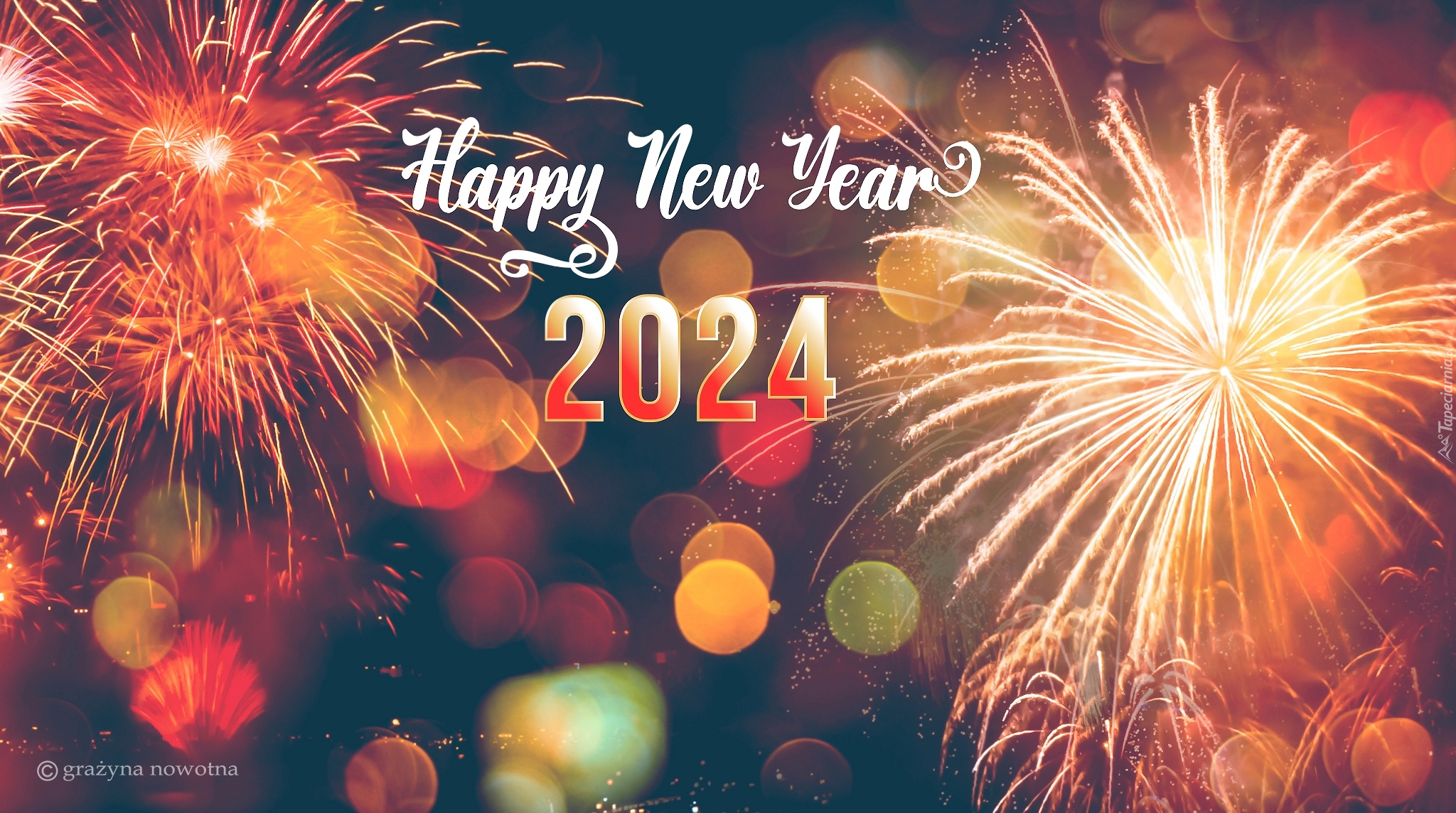 Edytor tapety: Kompozycja noworoczna z fajerwerkami i życzeniami