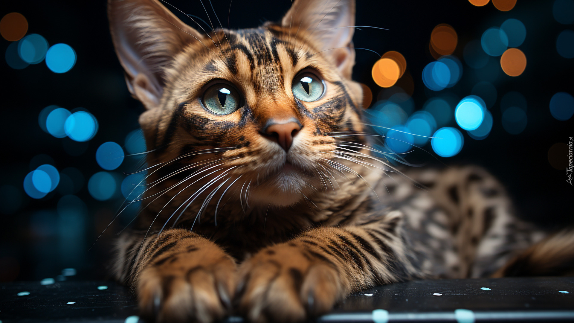 Edytor tapety: Niebieskooki kot na tle światełek