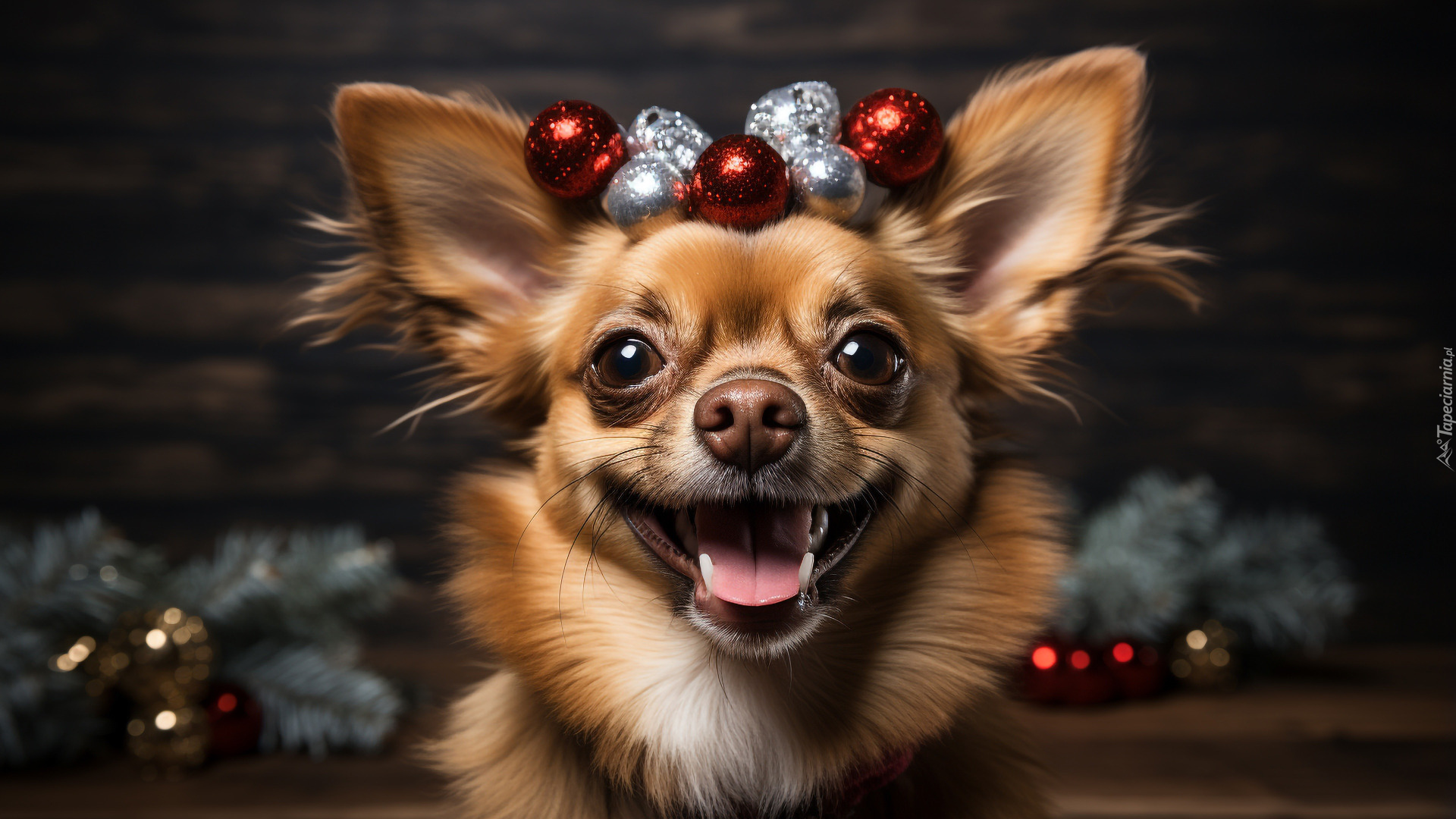 Edytor tapety: Chihuahua z bombkami na czubku głowy