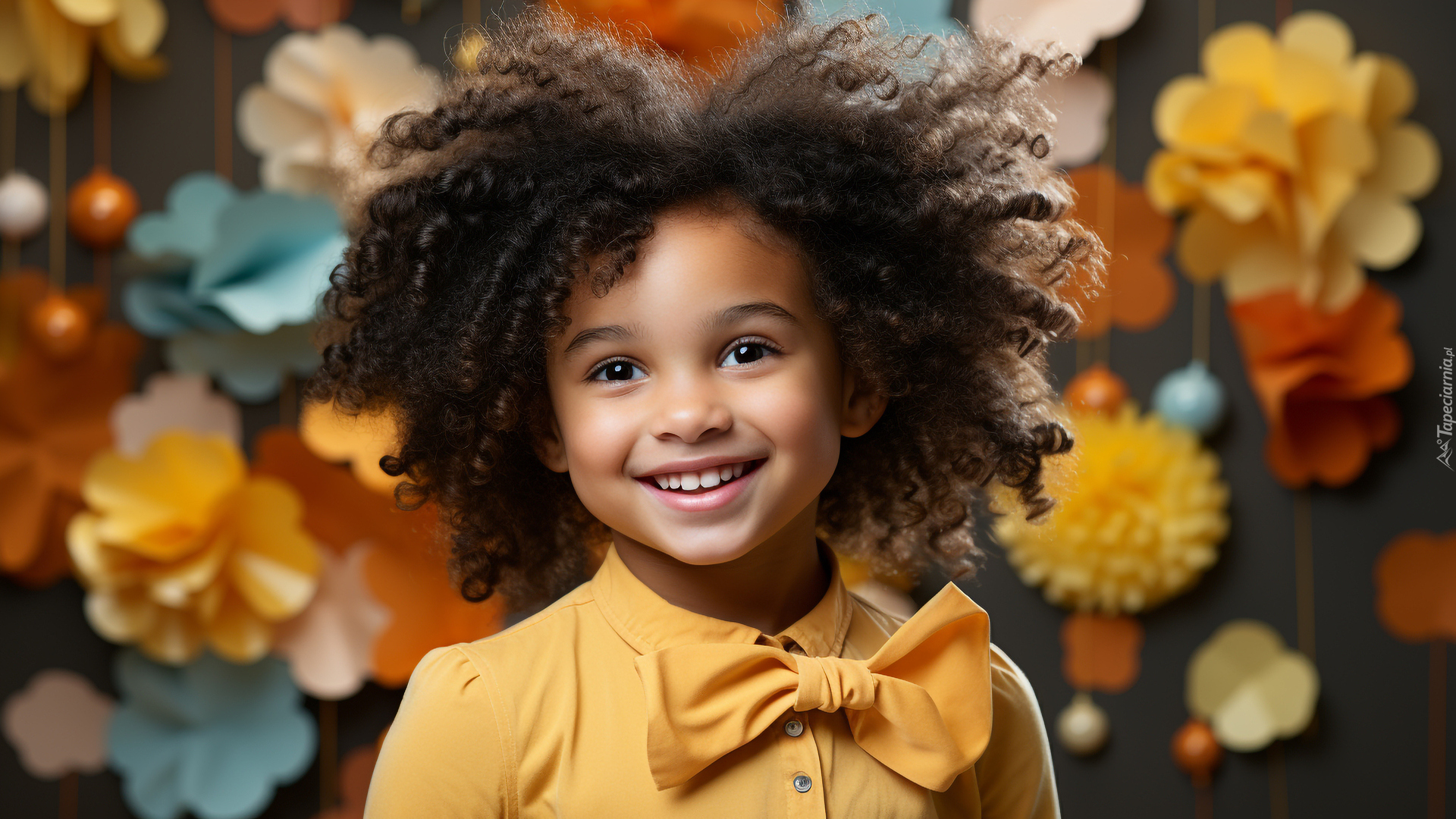 Edytor tapety: Uśmiechnięta dziewczynka w żółtej koszuli