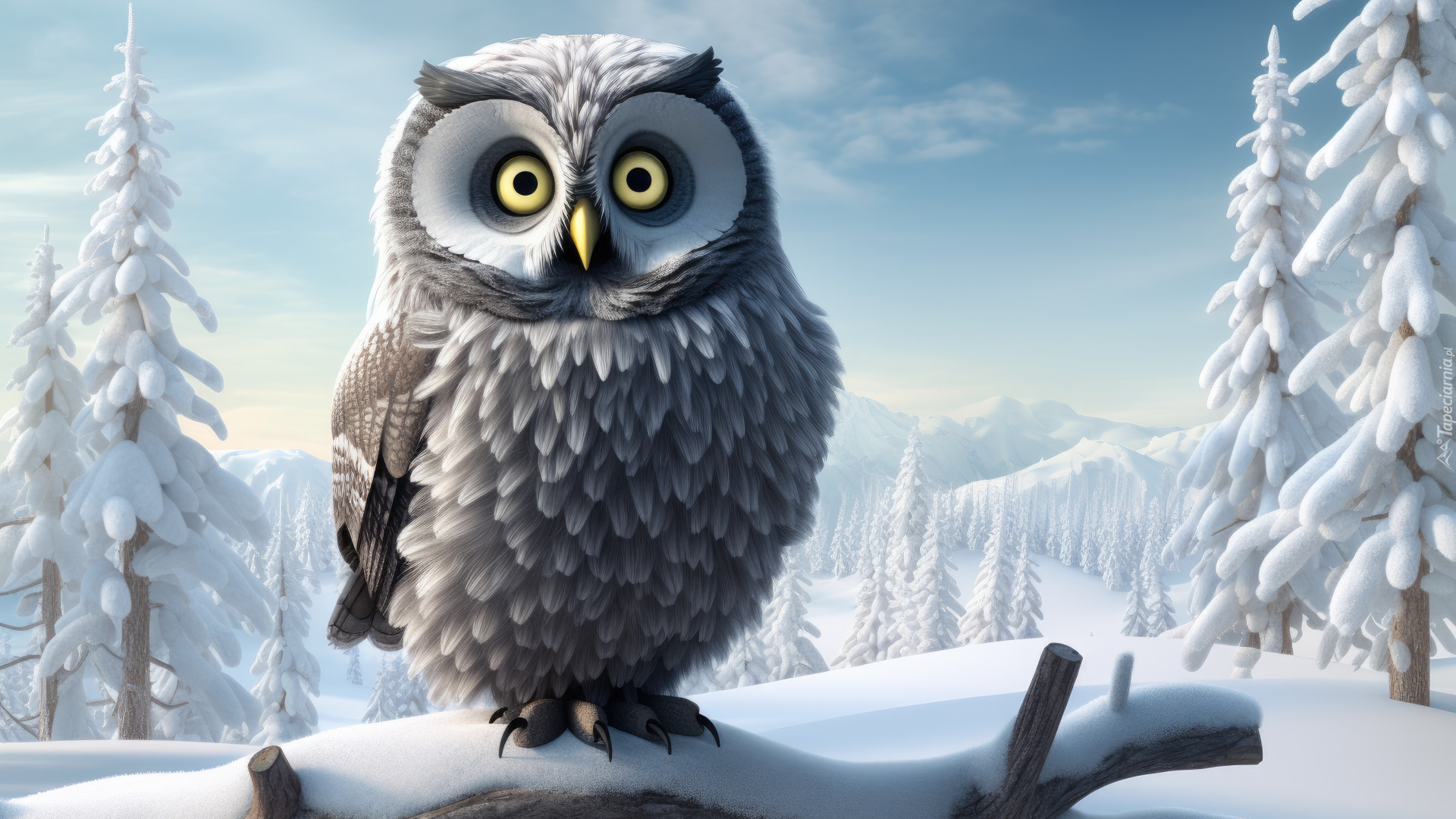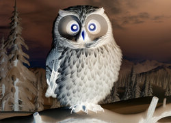 Edytor tapety: Sowa na ośnieżonym konarze drzewa