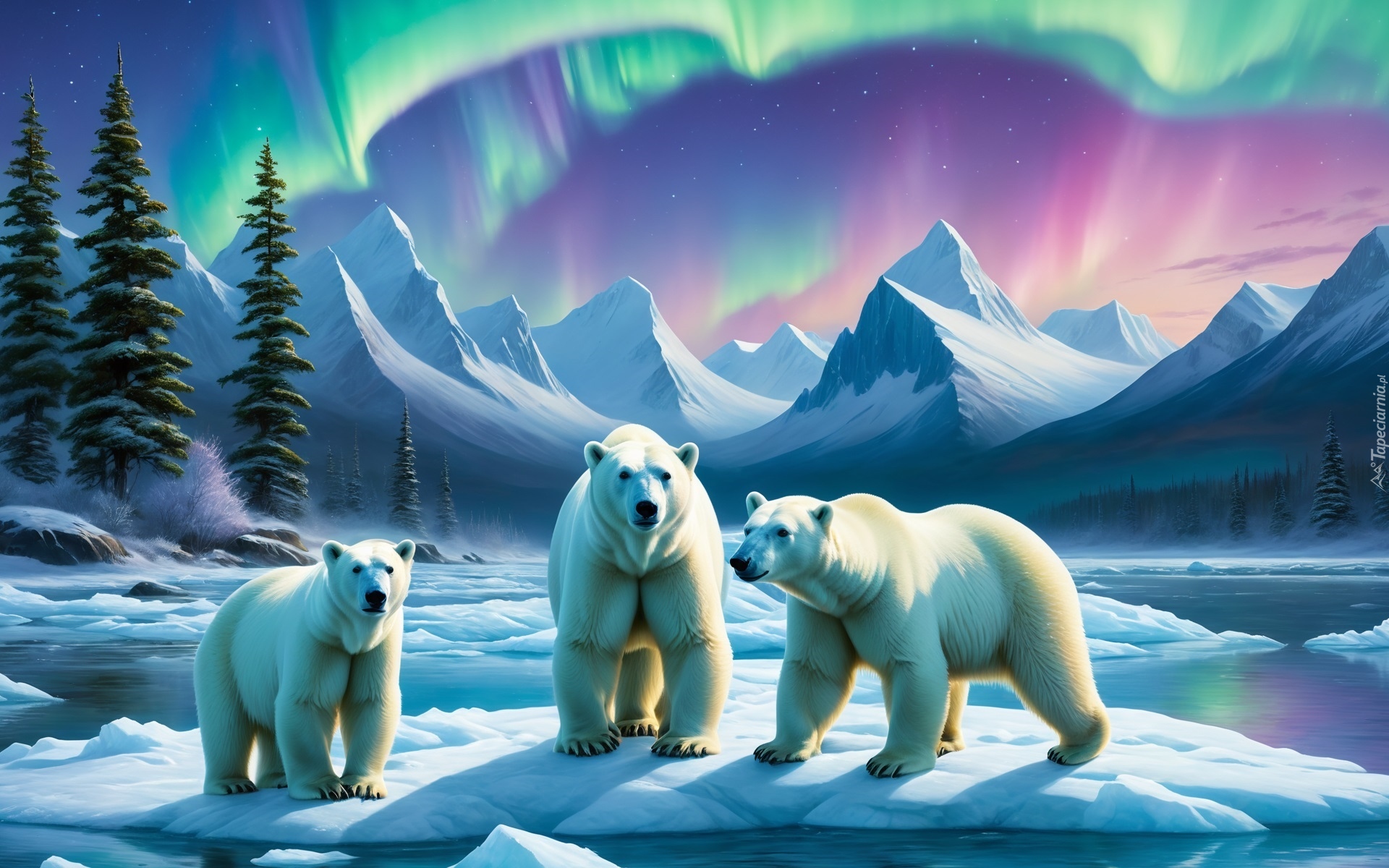 Edytor tapety: Trzy niedźwiedzie polarne na lodowej krze