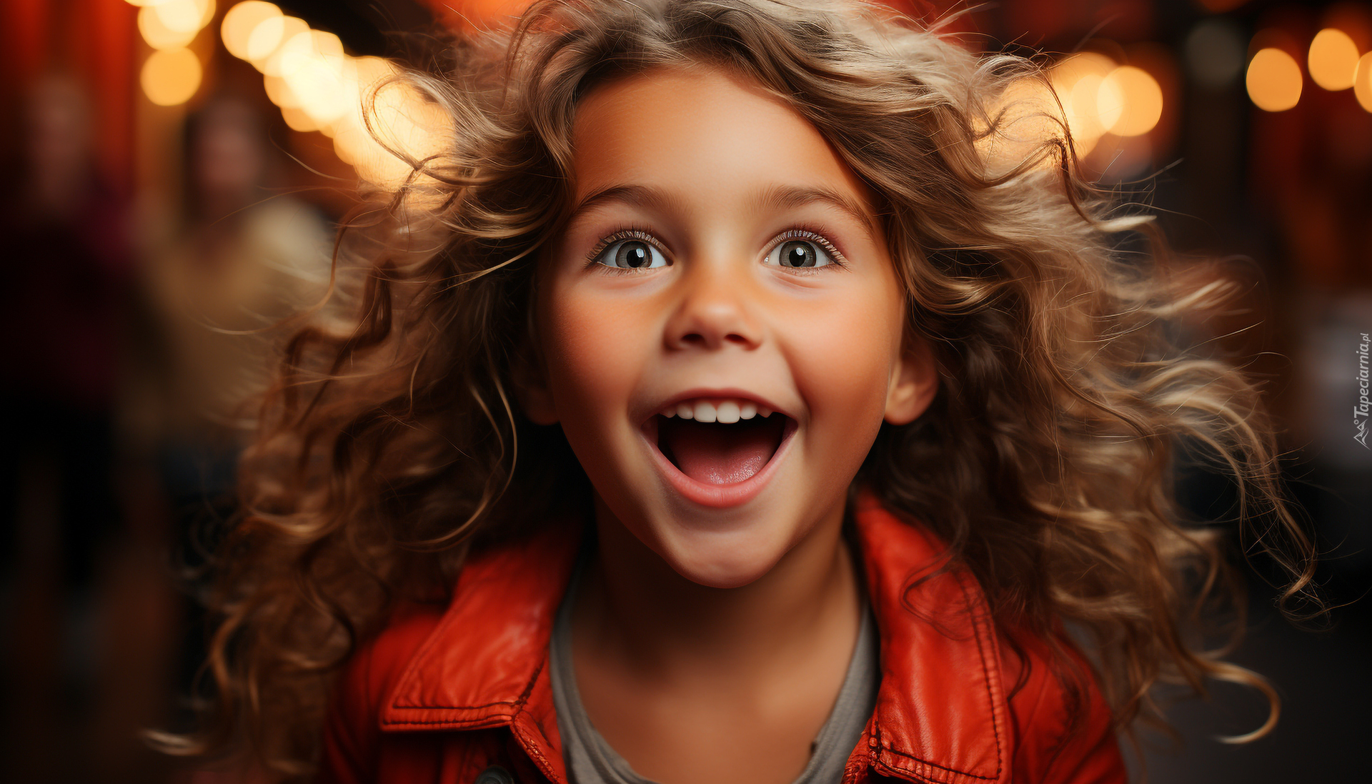 Edytor tapety: Dziewczynka z rozwianymi włosami i otwartą buzią