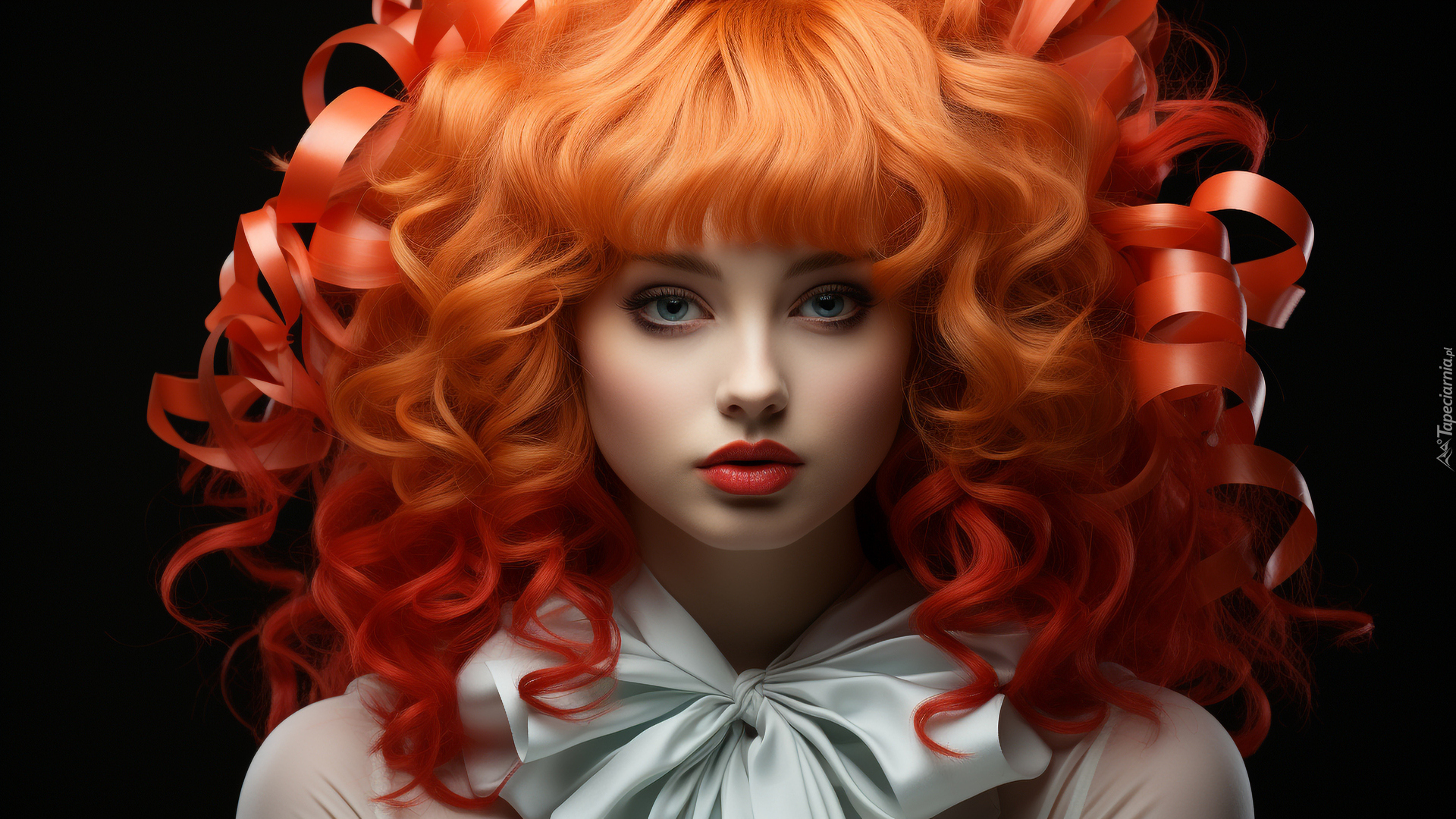 Edytor tapety: Rudowłosa kobieta z wstążkami we włosach