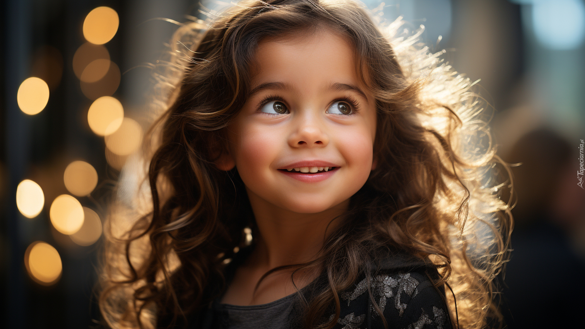 Edytor tapety: Spojrzenie uśmiechniętej długowłosej dziewczynki