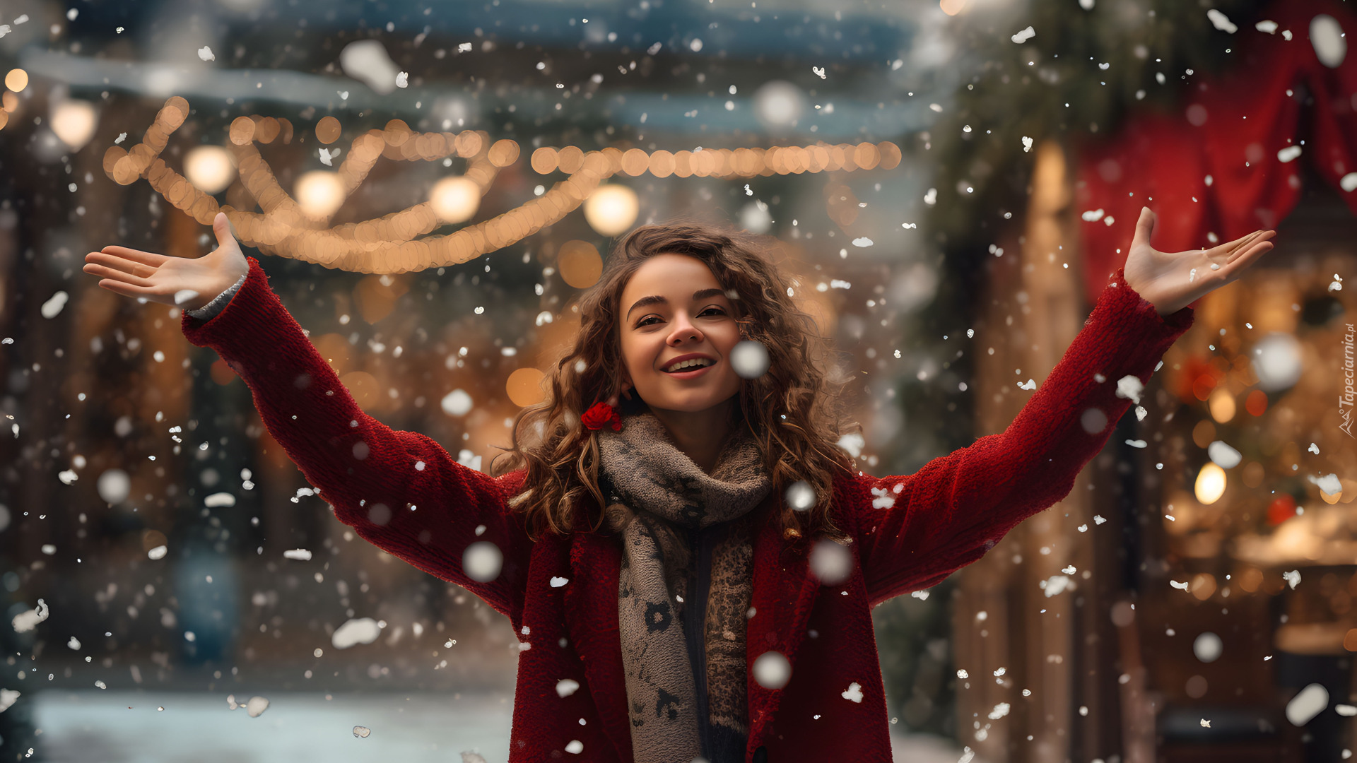 Edytor tapety: Radosna dziewczyna w padającym śniegu