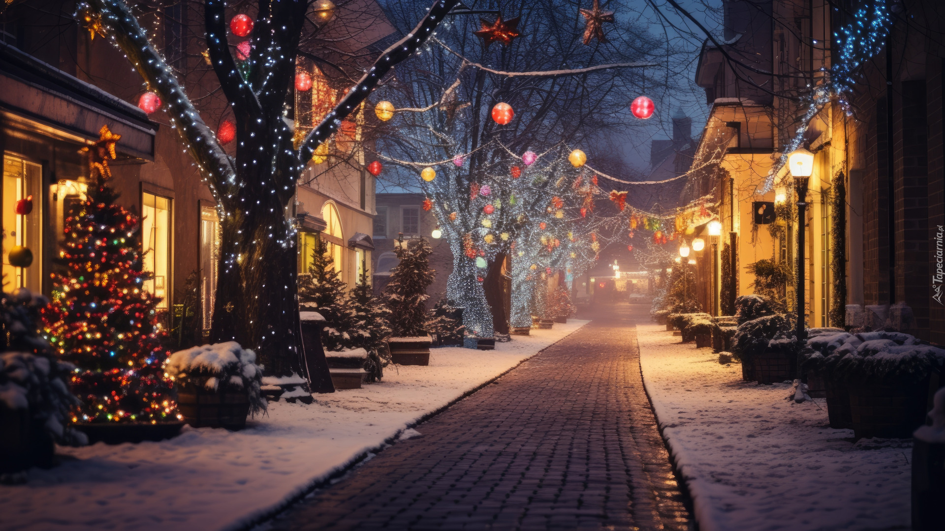 Edytor tapety: Oświetlona udekorowana świątecznie ulica