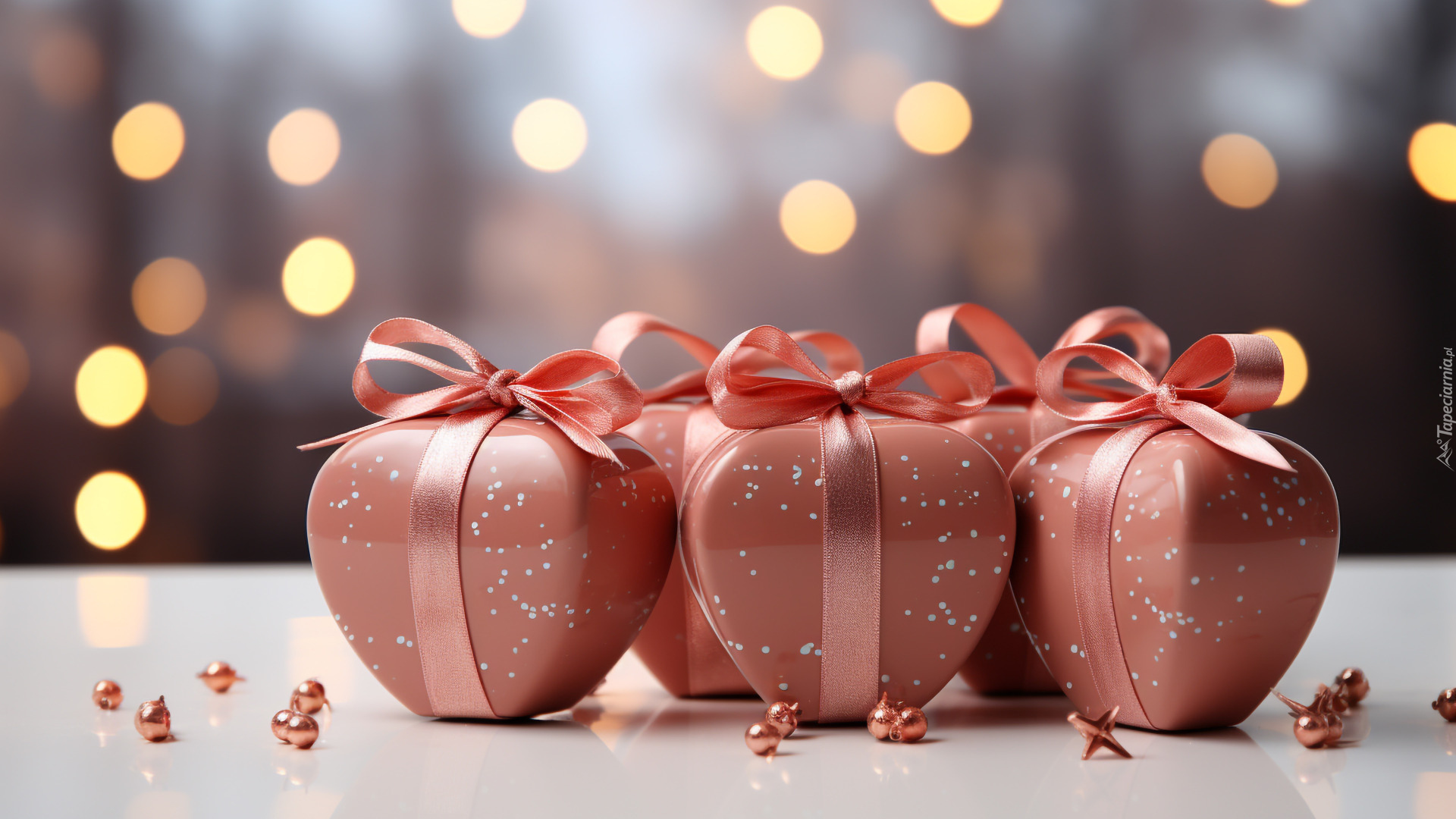 Edytor tapety: Pudełeczka z prezentami przewiązane kokardkami