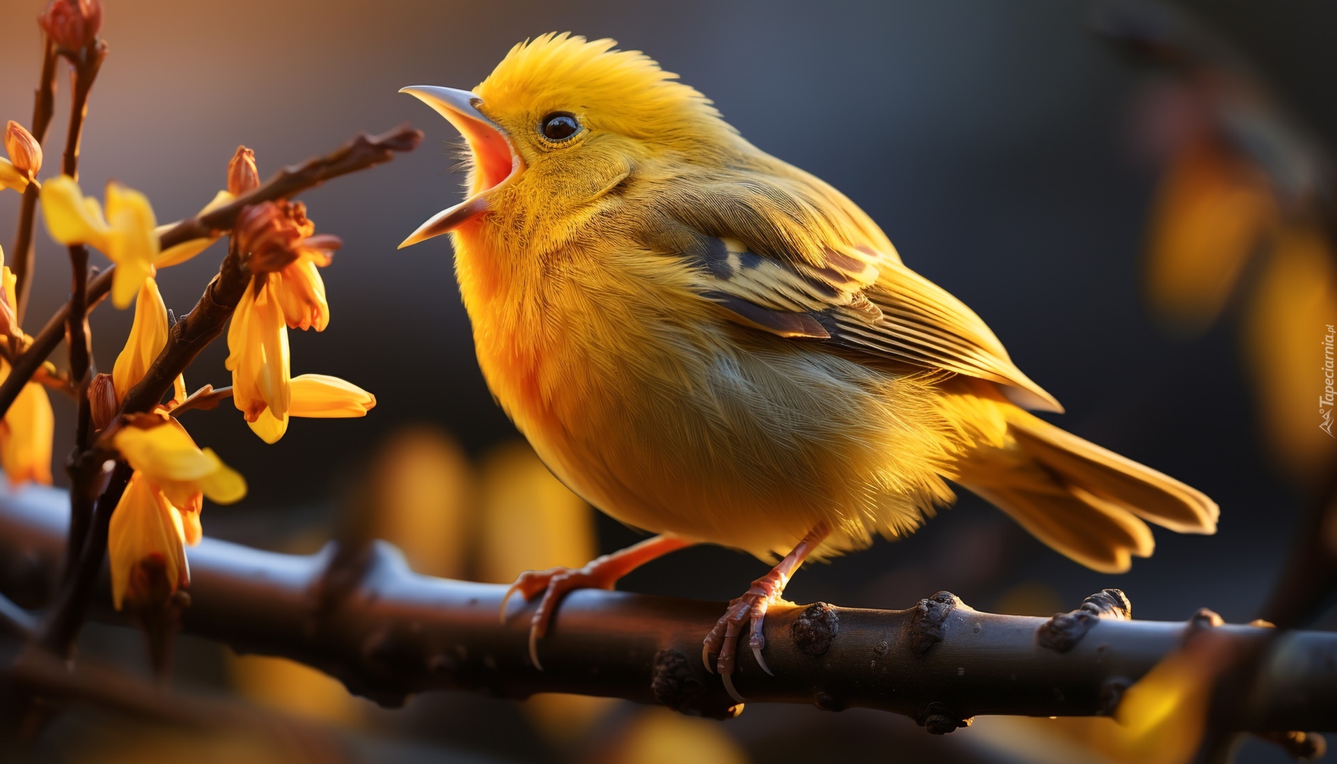 Edytor tapety: Żółty ptak na gałązce