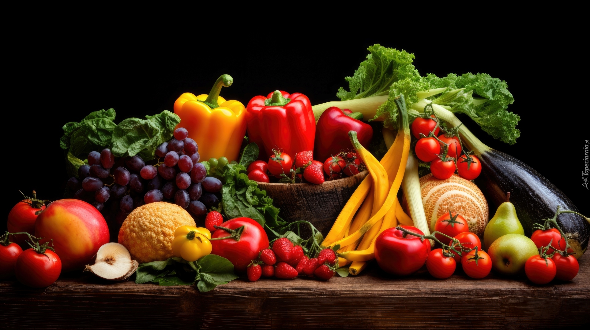 Edytor tapety: Kolorowe warzywa i owoce na czarnym tle