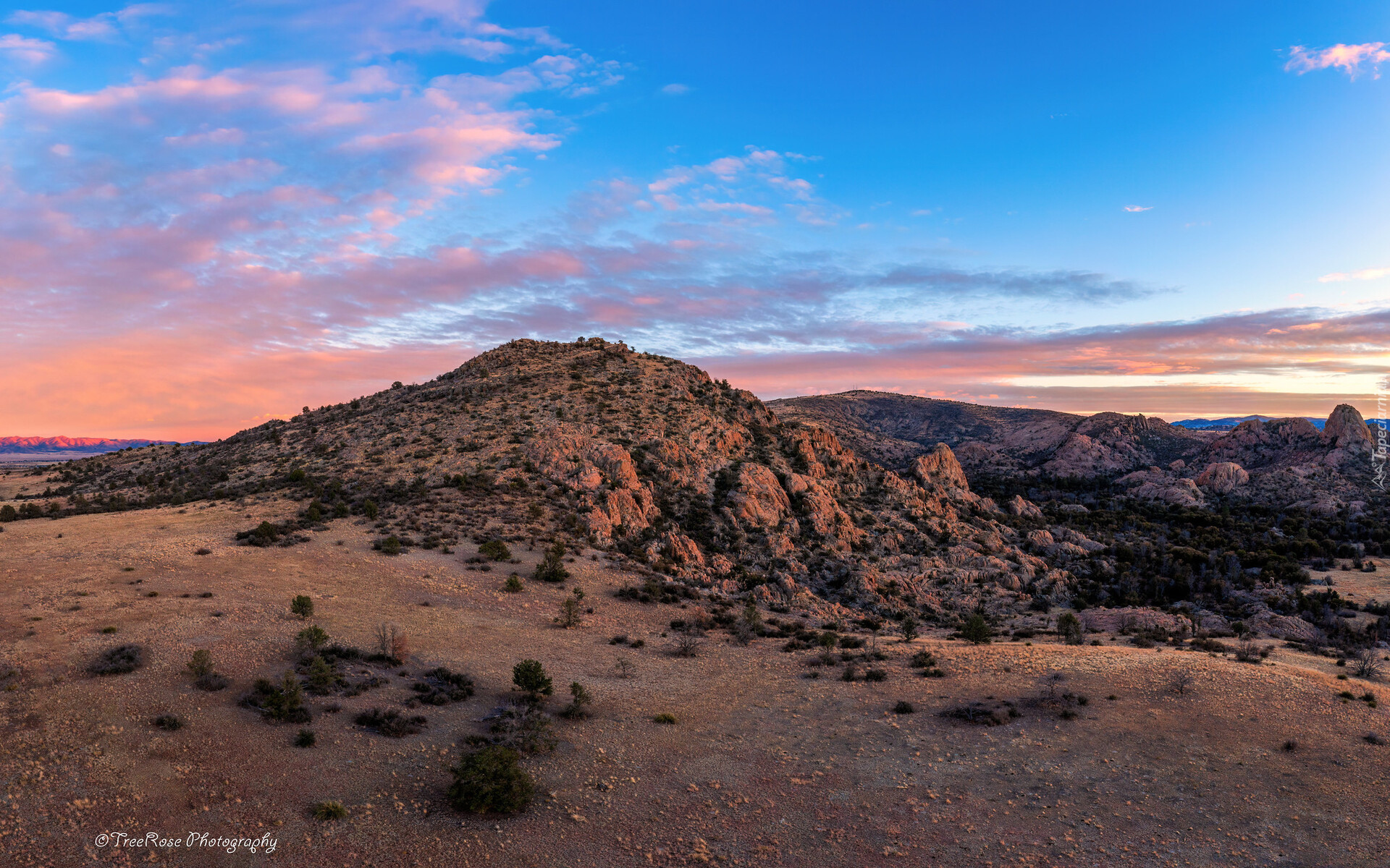Edytor tapety: Zachód słońca nad granitowymi skałami