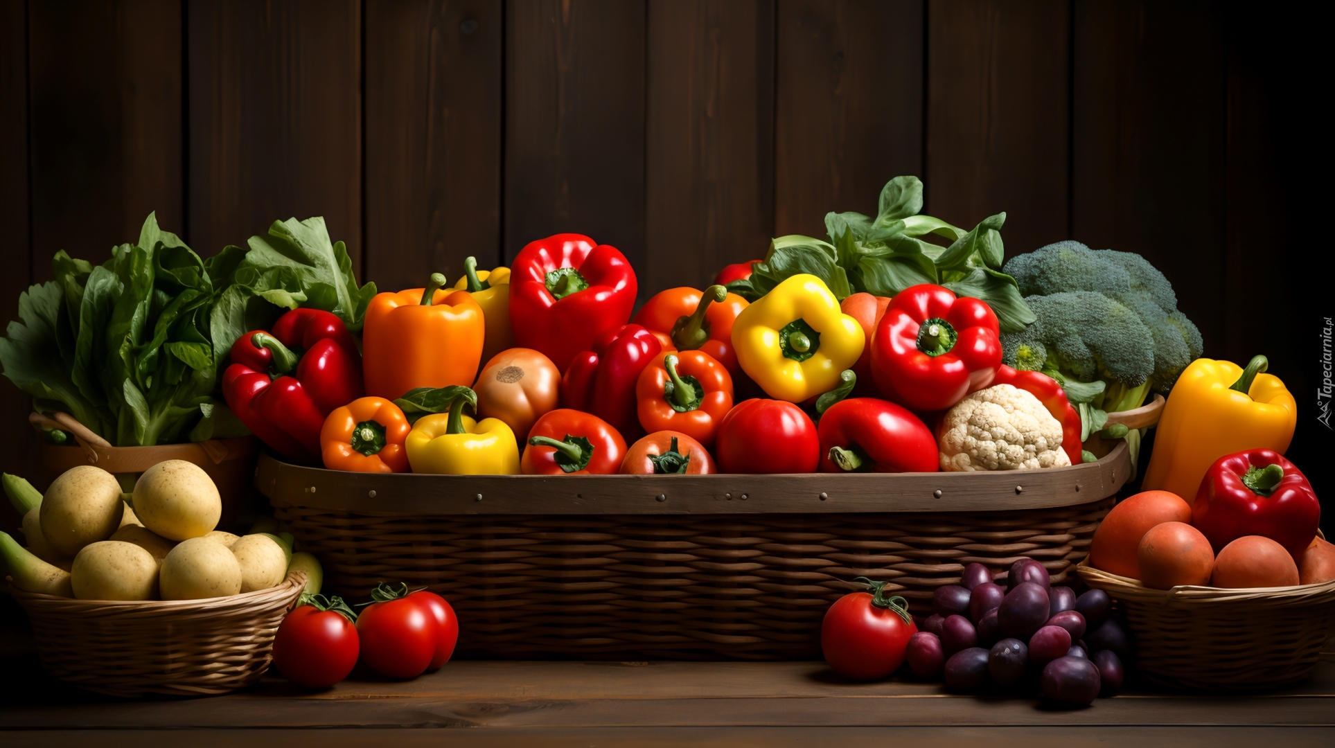 Edytor tapety: Papryka i inne warzywa w koszyku