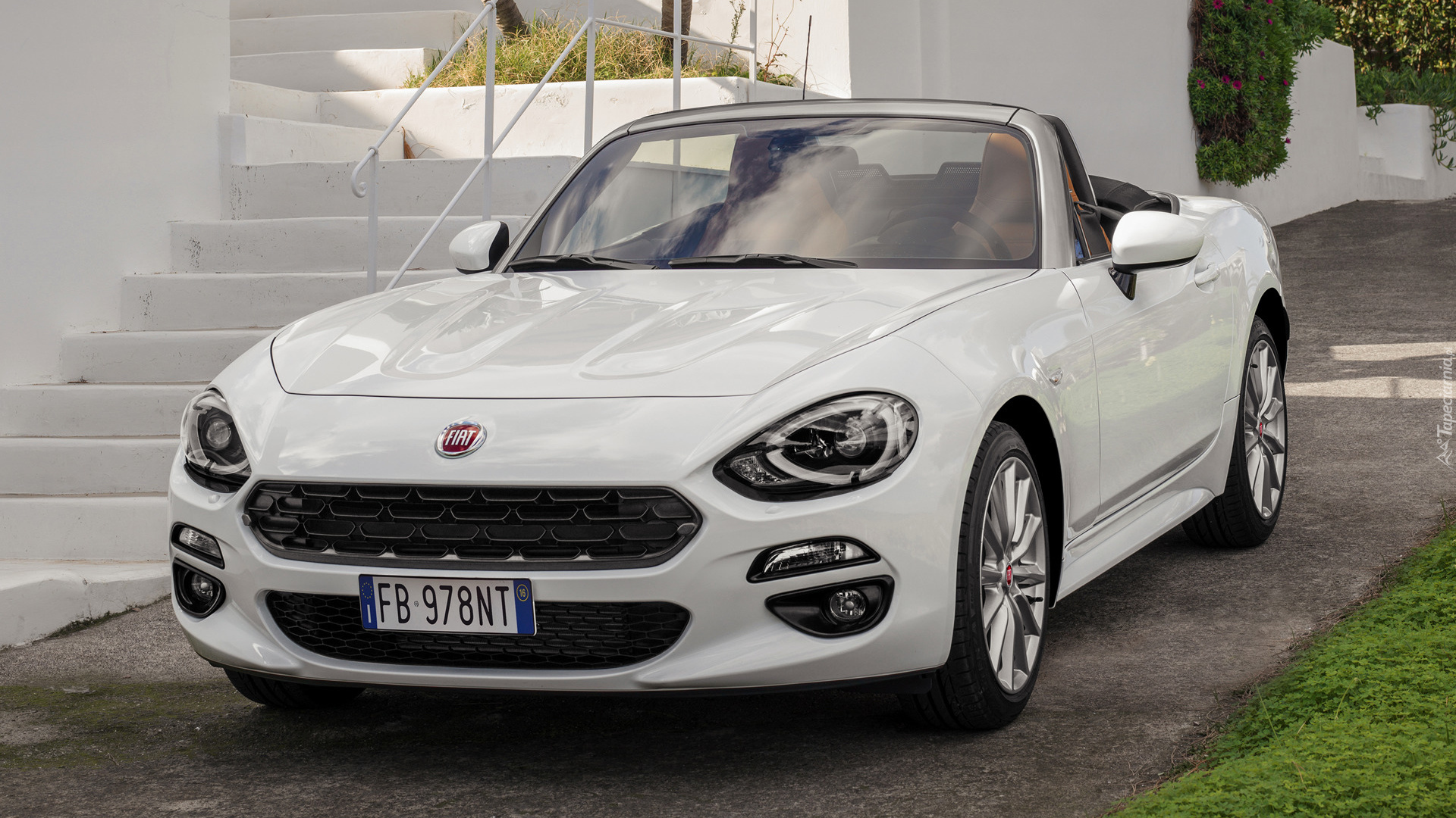 Edytor tapety: Biały Fiat 124 Spider