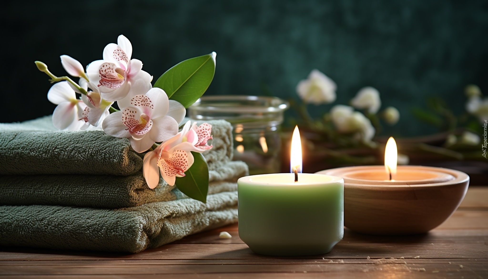 Edytor tapety: Storczyk na ręcznikach i płonące świece