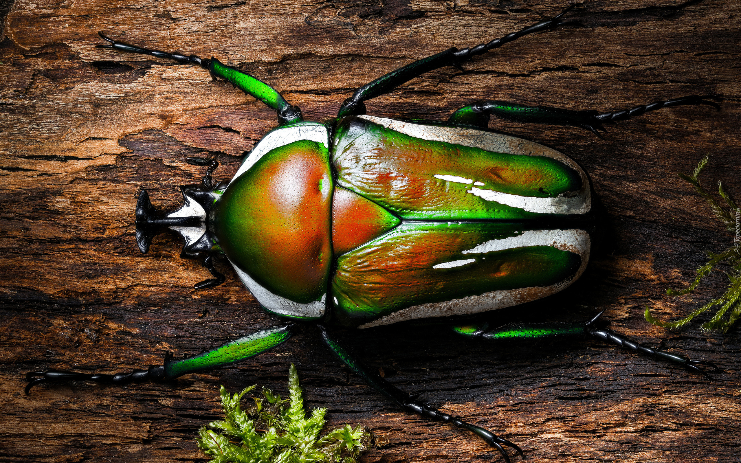 Edytor tapety: Chrząszcz Derby na korze drzewa