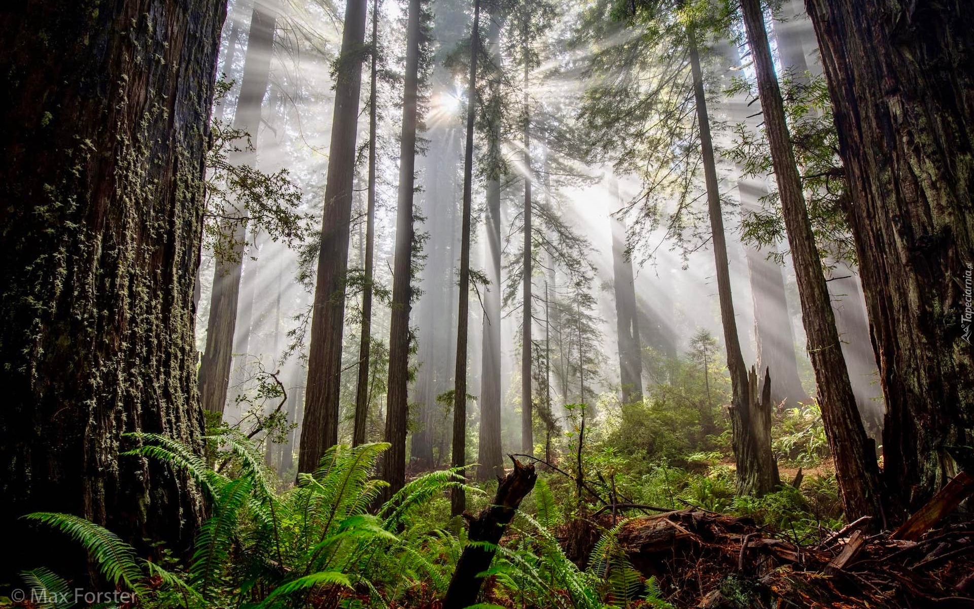 Edytor tapety: Rozproszone promienie słoneczne w lesie