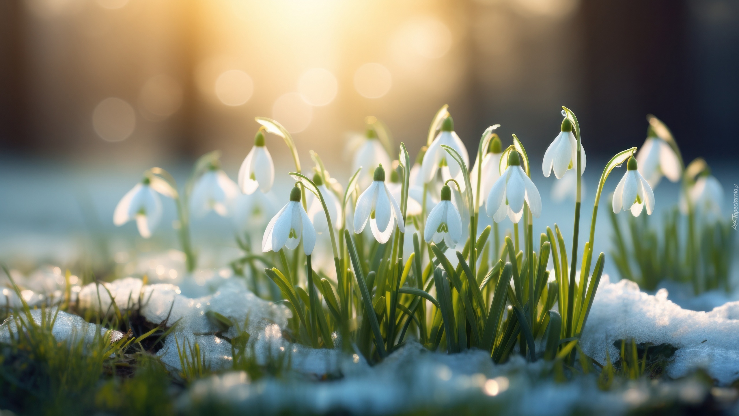Edytor tapety: Rozświetlone przebiśniegi w śniegu