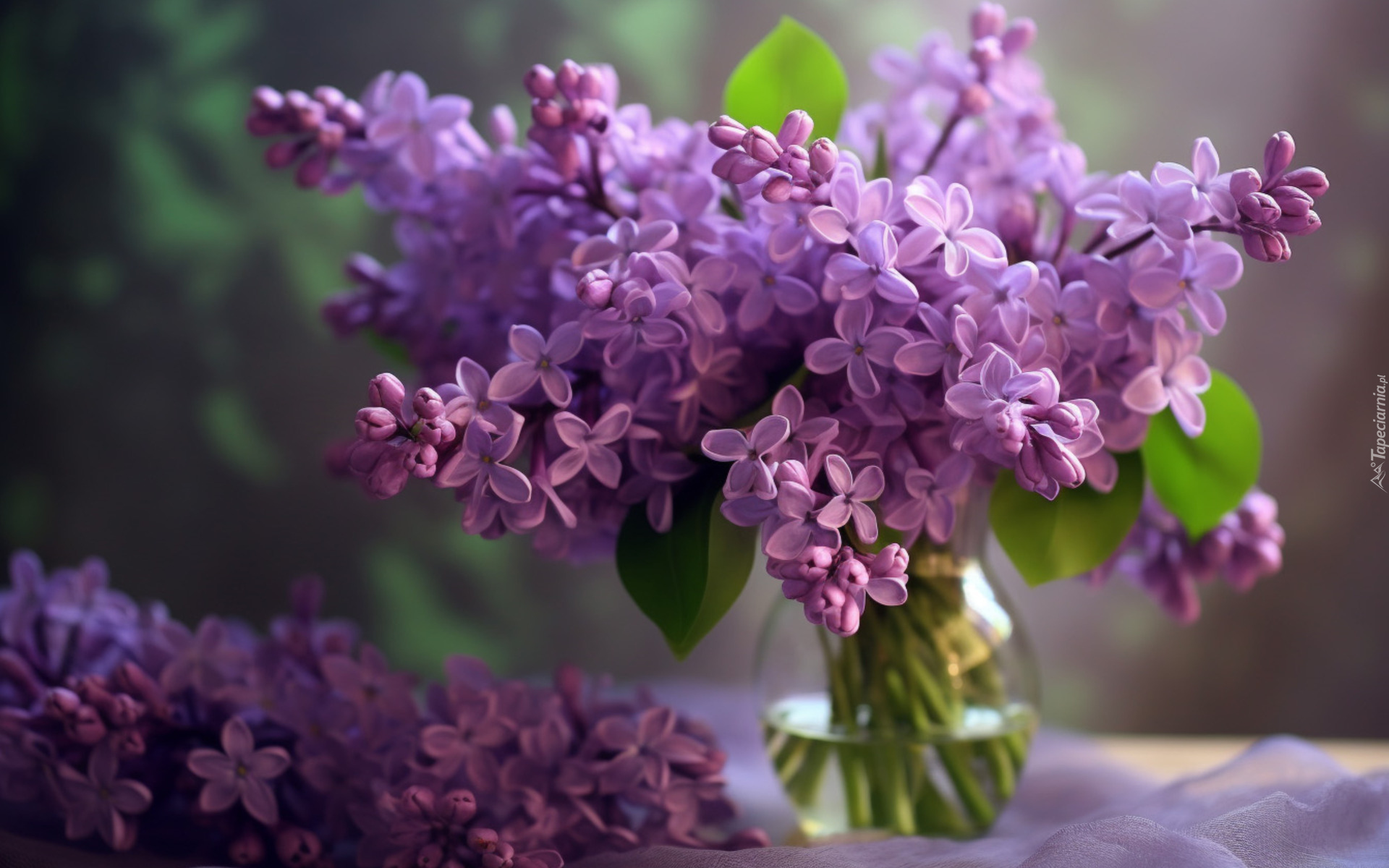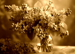 Edytor tapety: Gałązki fioletowego bzu w wazonie