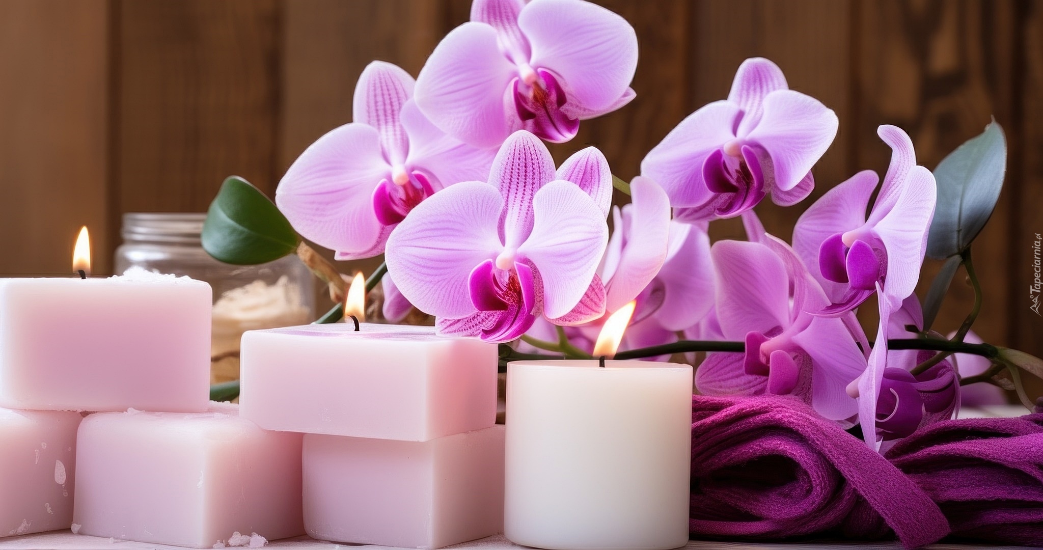Edytor tapety: Storczyk na ręczniku obok świec