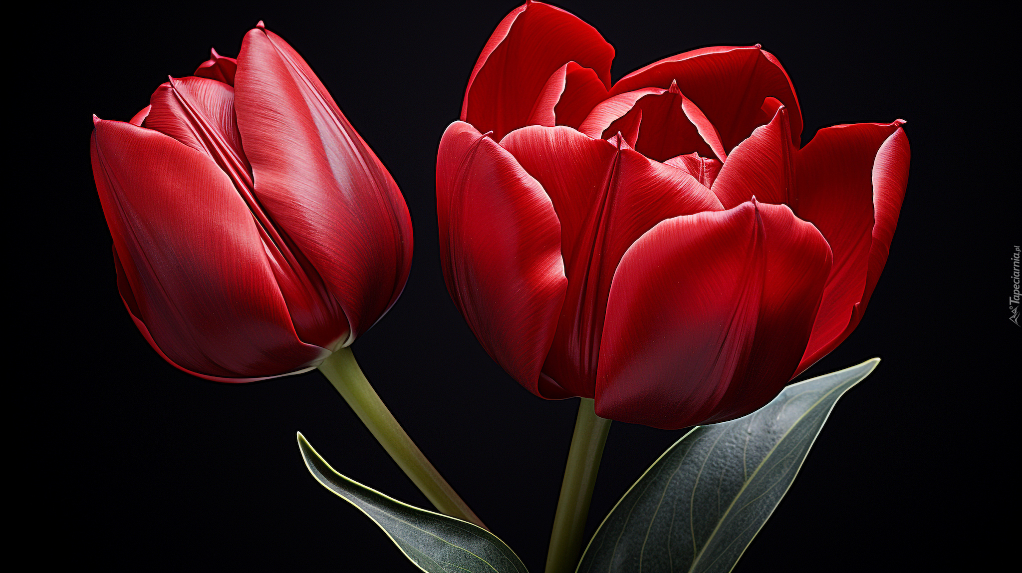 Edytor tapety: Dwa czerwone tulipany z liśćmi w 2D