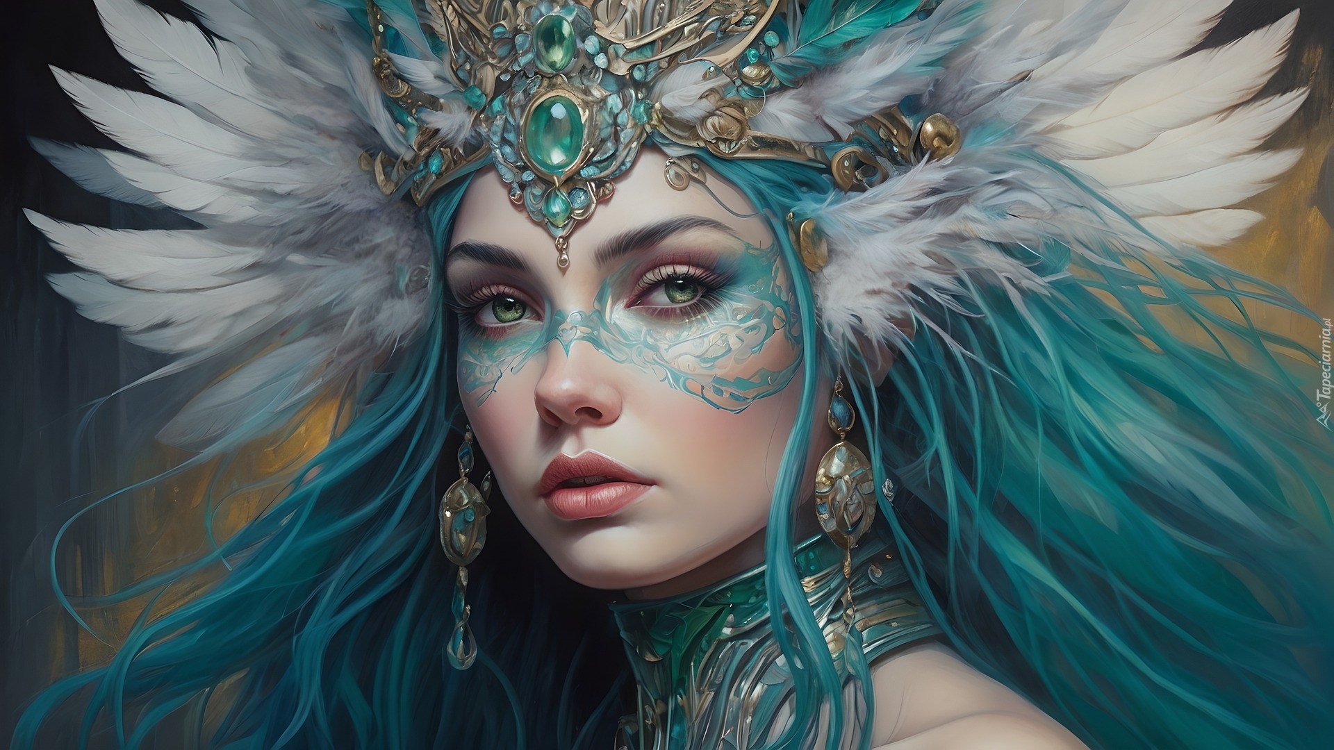 Edytor tapety: Twarz kobiety w pióropuszu i biżuterii