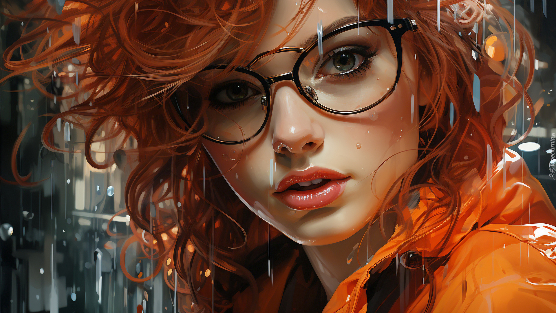 Edytor tapety: Twarz rudowłosej kobiety w okularach