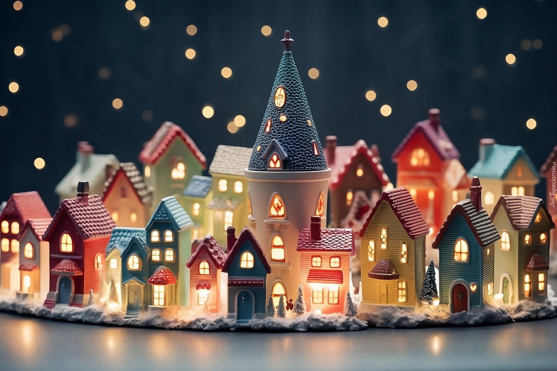 Edytor tapety: Miniatury oświetlonych domów