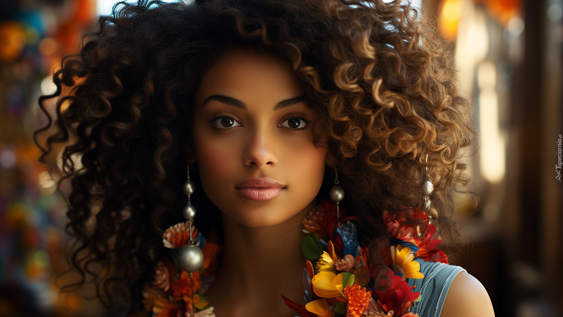 Edytor tapety: Spojrzenie kobiety o długich i kręconych włosach