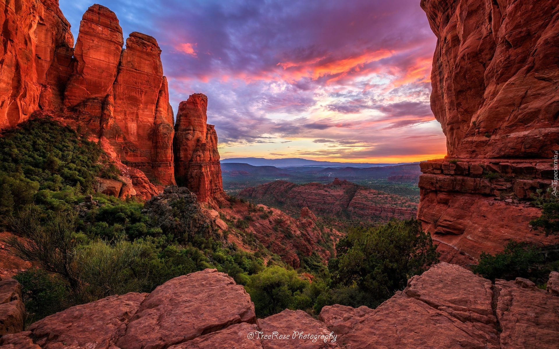 Edytor tapety: Rozświetlone blaskiem zachodzącego słońca skały w Sedonie
