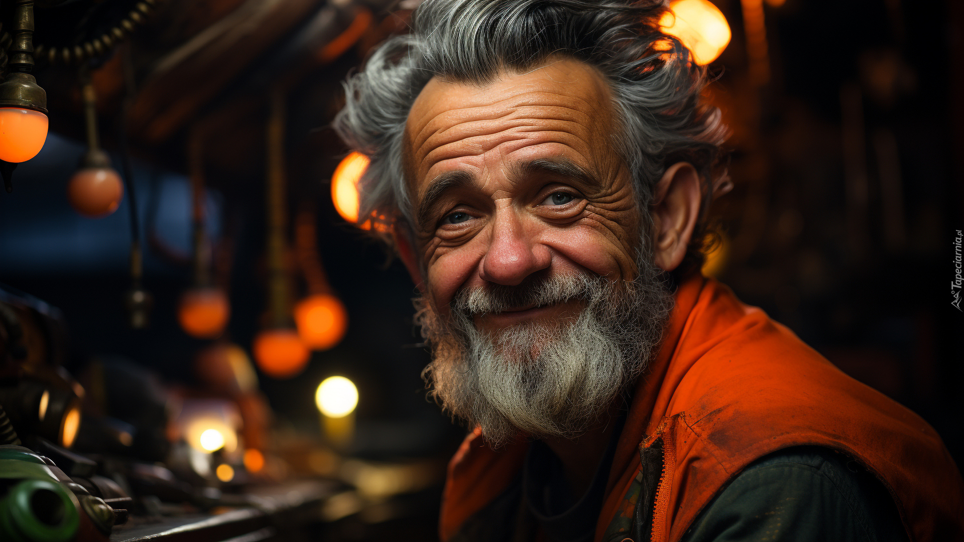 Edytor tapety: Uśmiechnięty starszy mężczyzna z zarostem