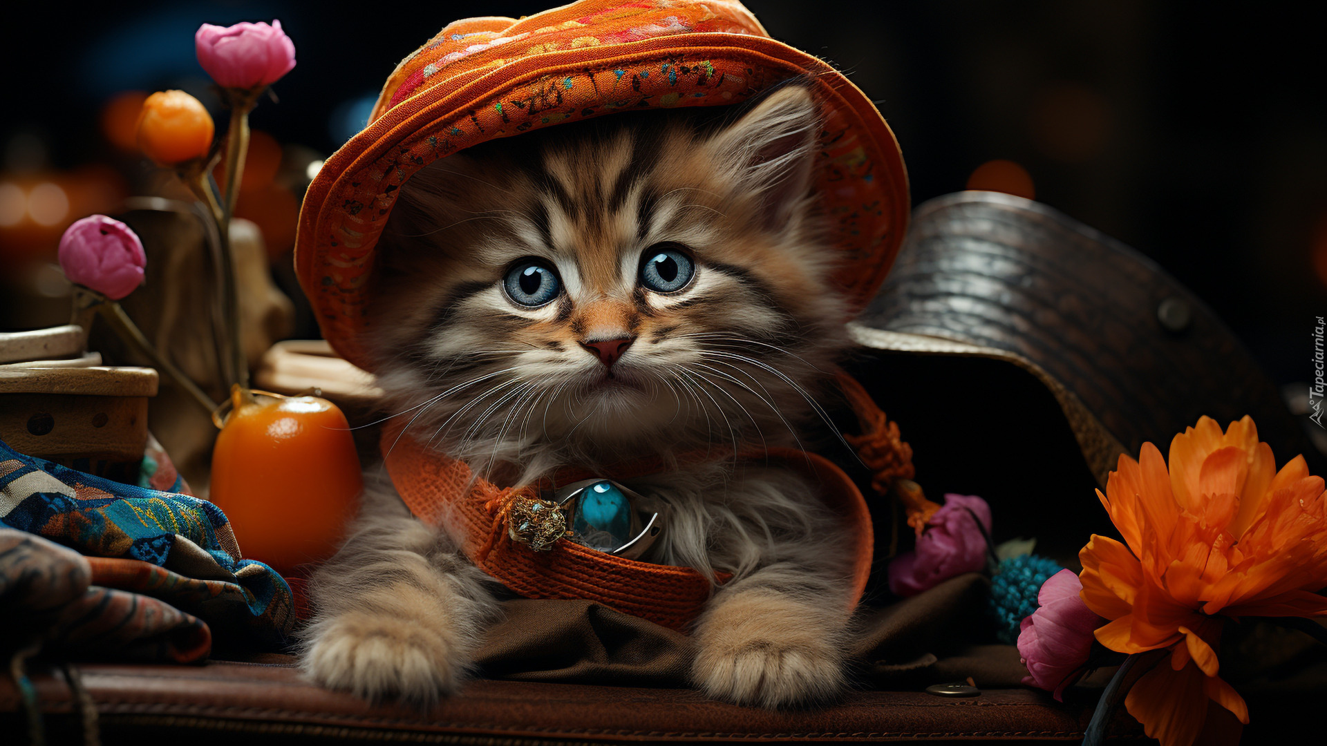 Edytor tapety: Kotek w pomarańczowym kapeluszu