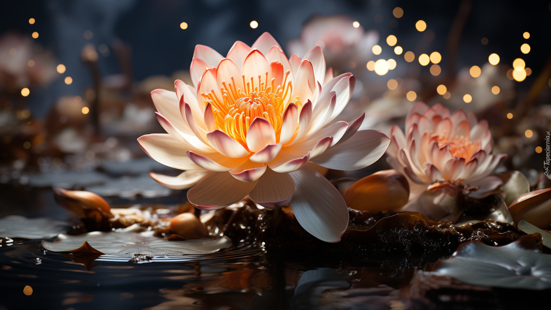 Edytor tapety: Rozkwitnięta kremowa lilia wodna