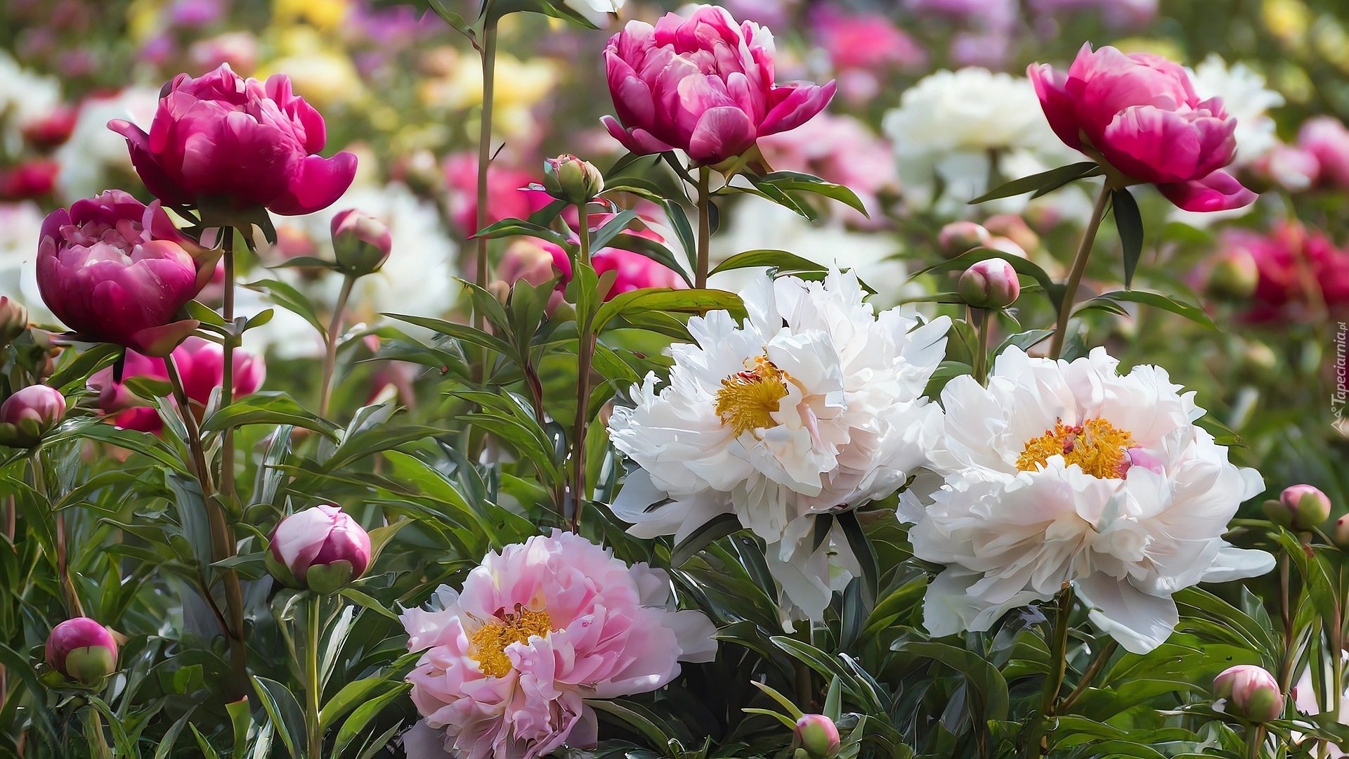 Edytor tapety: Kolorowe piwonie w zbliżeniu