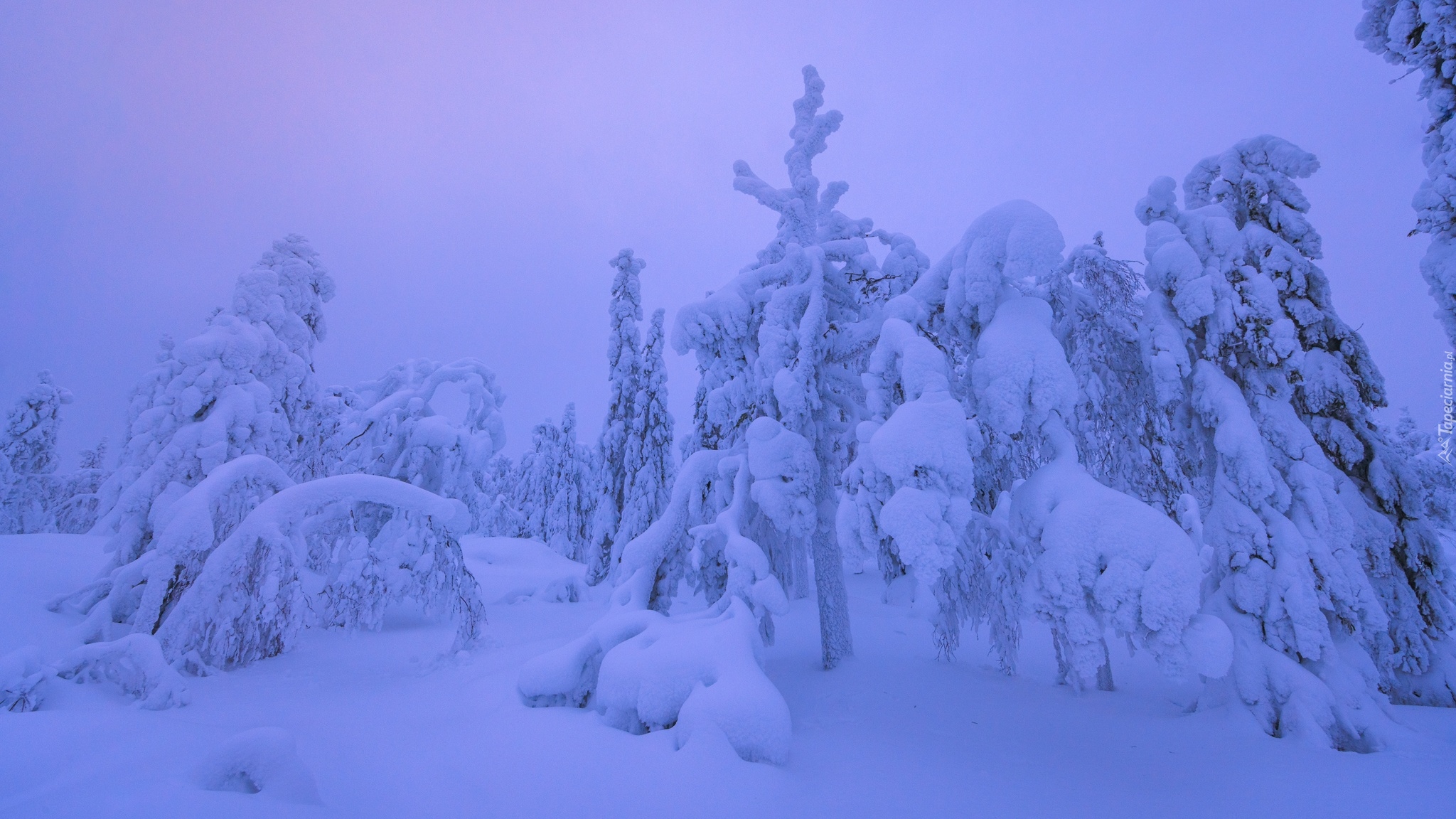 Edytor tapety: Zasypane śniegiem drzewa w zapach