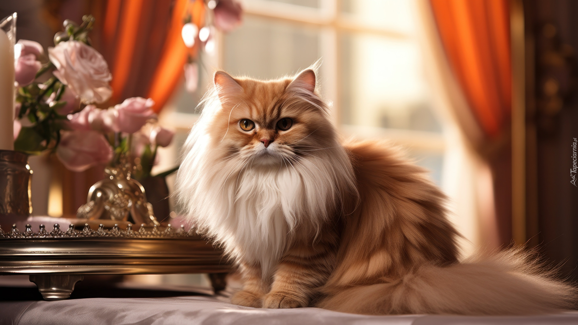 Edytor tapety: Puszysty kot na tle okna