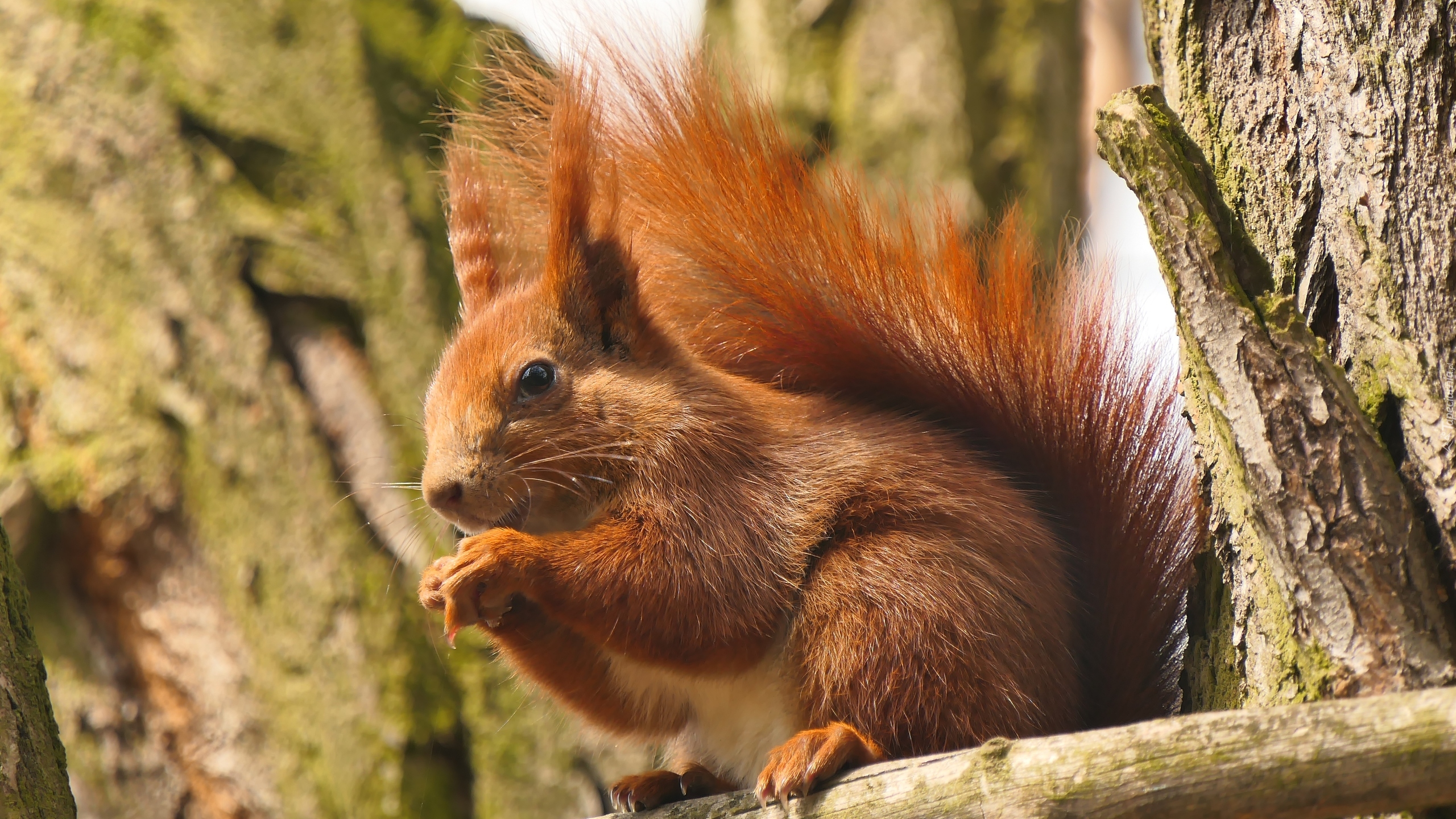 Edytor tapety: Ruda wiewiórka siedząca na konarze drzewa