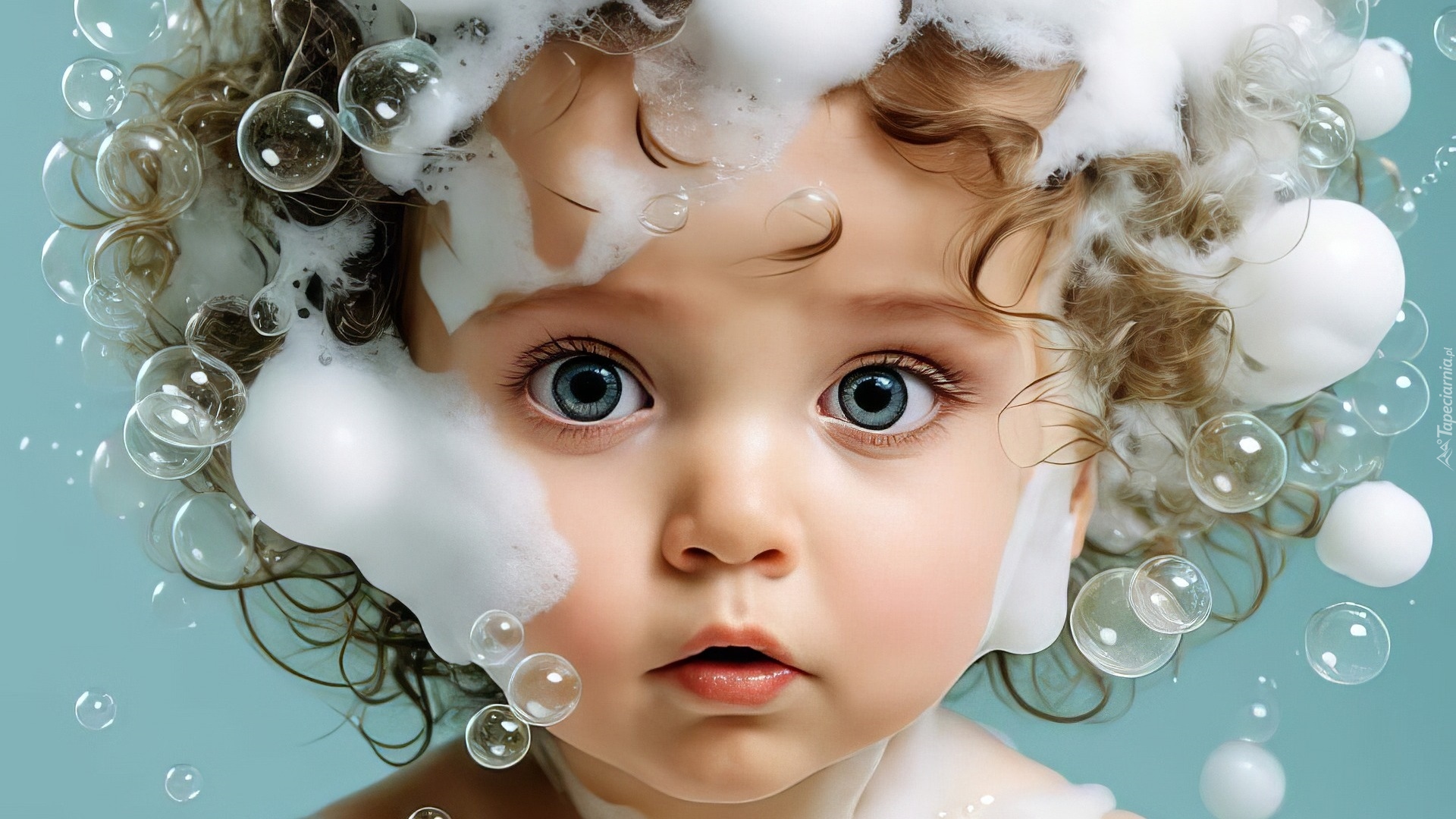 Edytor tapety: Twarz dziecka z pianą we włosach
