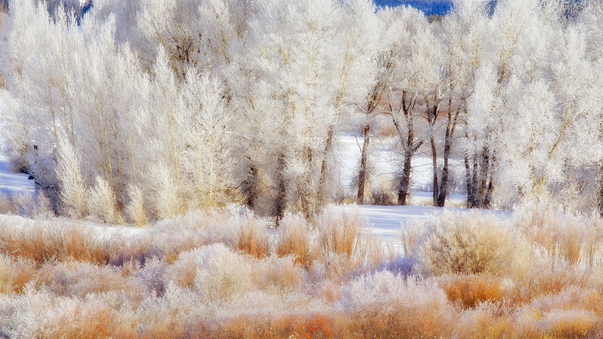 Edytor tapety: Oszronione drzewa i krzewy na polanie