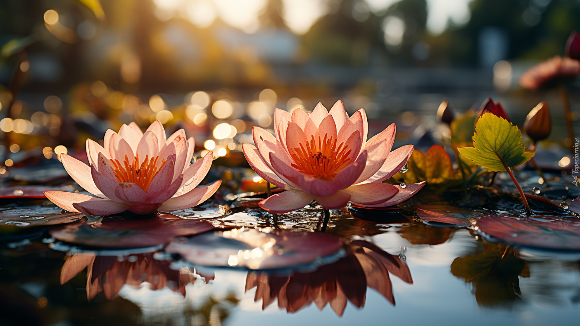 Edytor tapety: Dwie rozwinięte lilie wodne