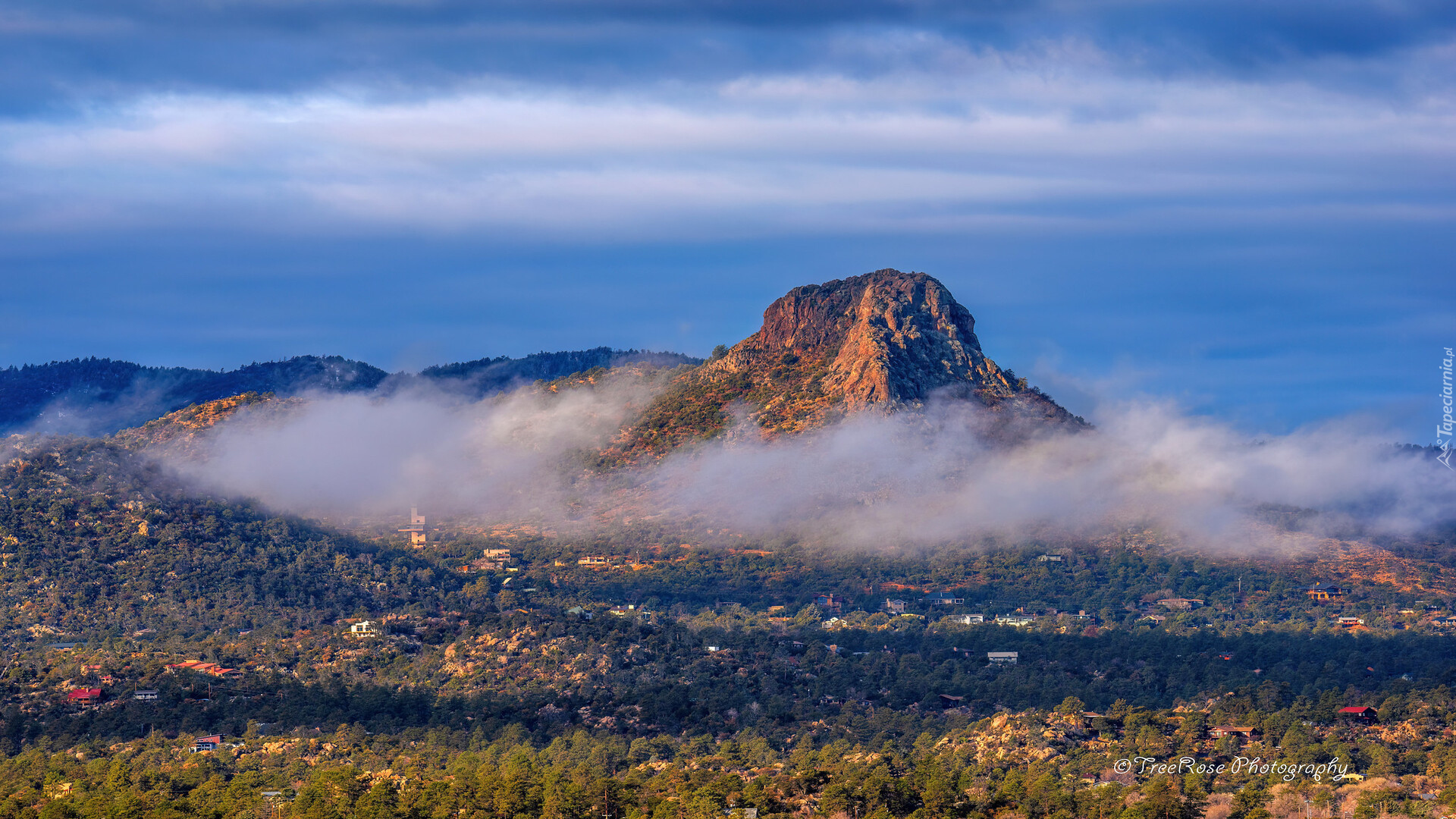 Edytor tapety: Thumb Butte we mgle w Prescott
