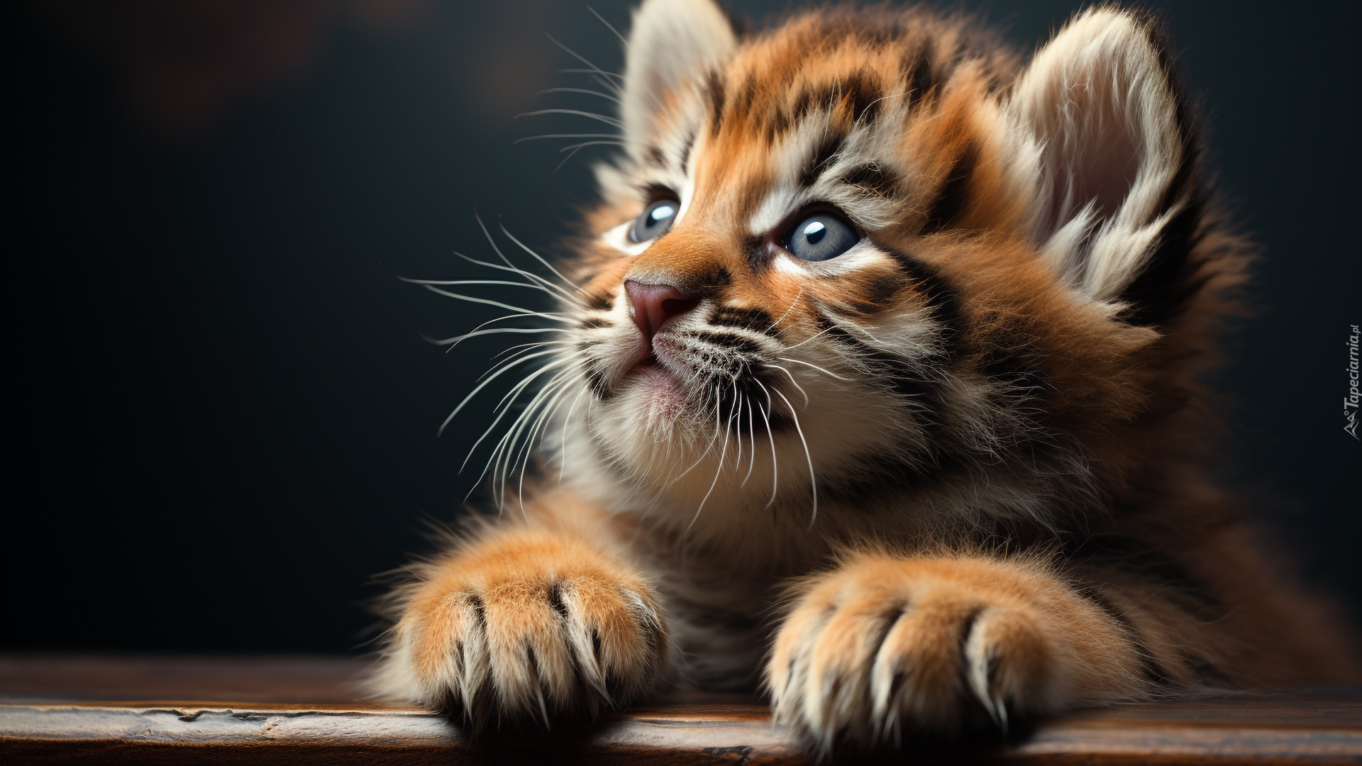 Edytor tapety: Mały tygrys z łapkami na desce