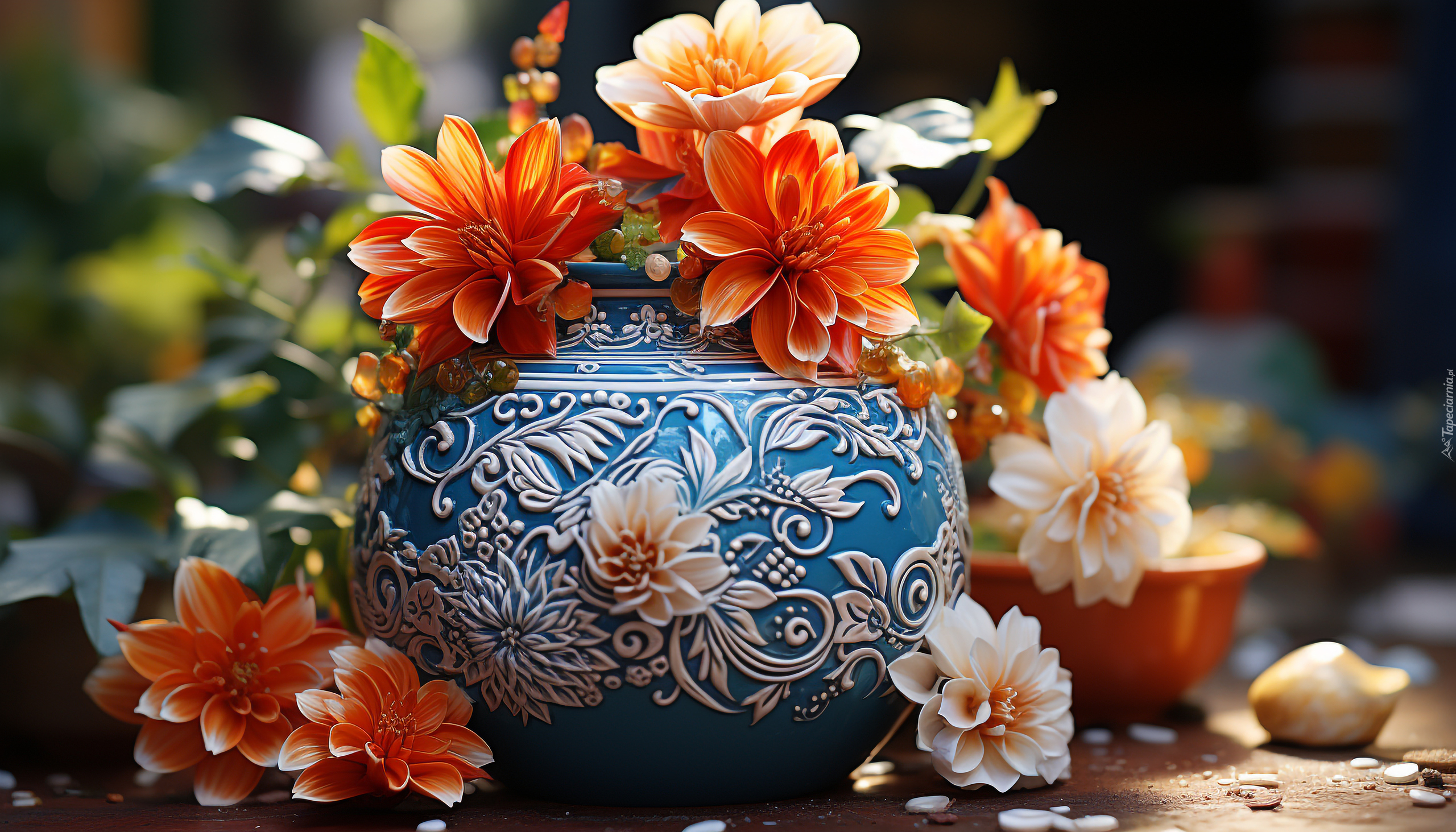 Edytor tapety: Dalie w ozdobnym ceramicznym wazonie