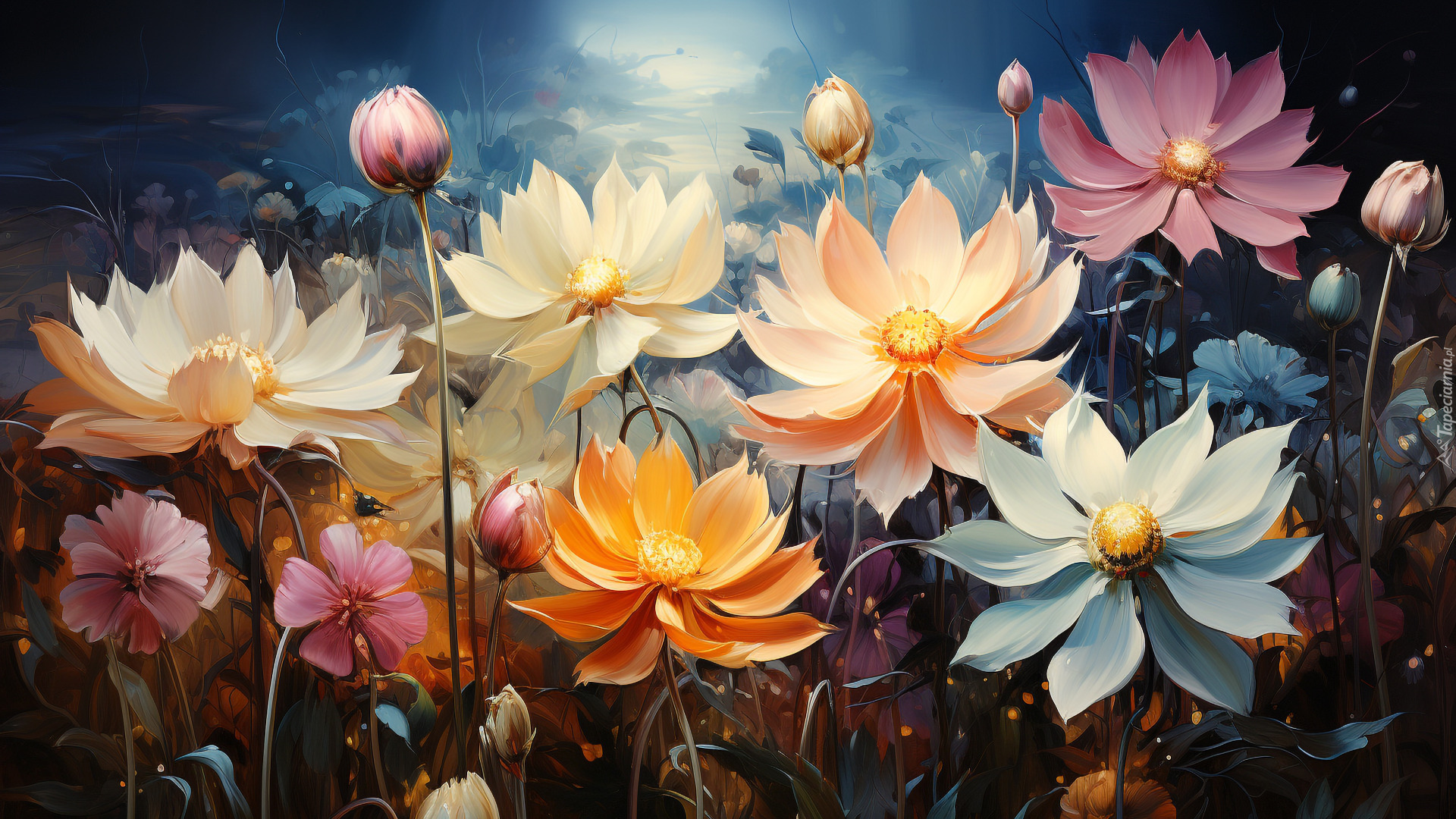 Edytor tapety: Kolorowe kwiaty z pąkami w grafice
