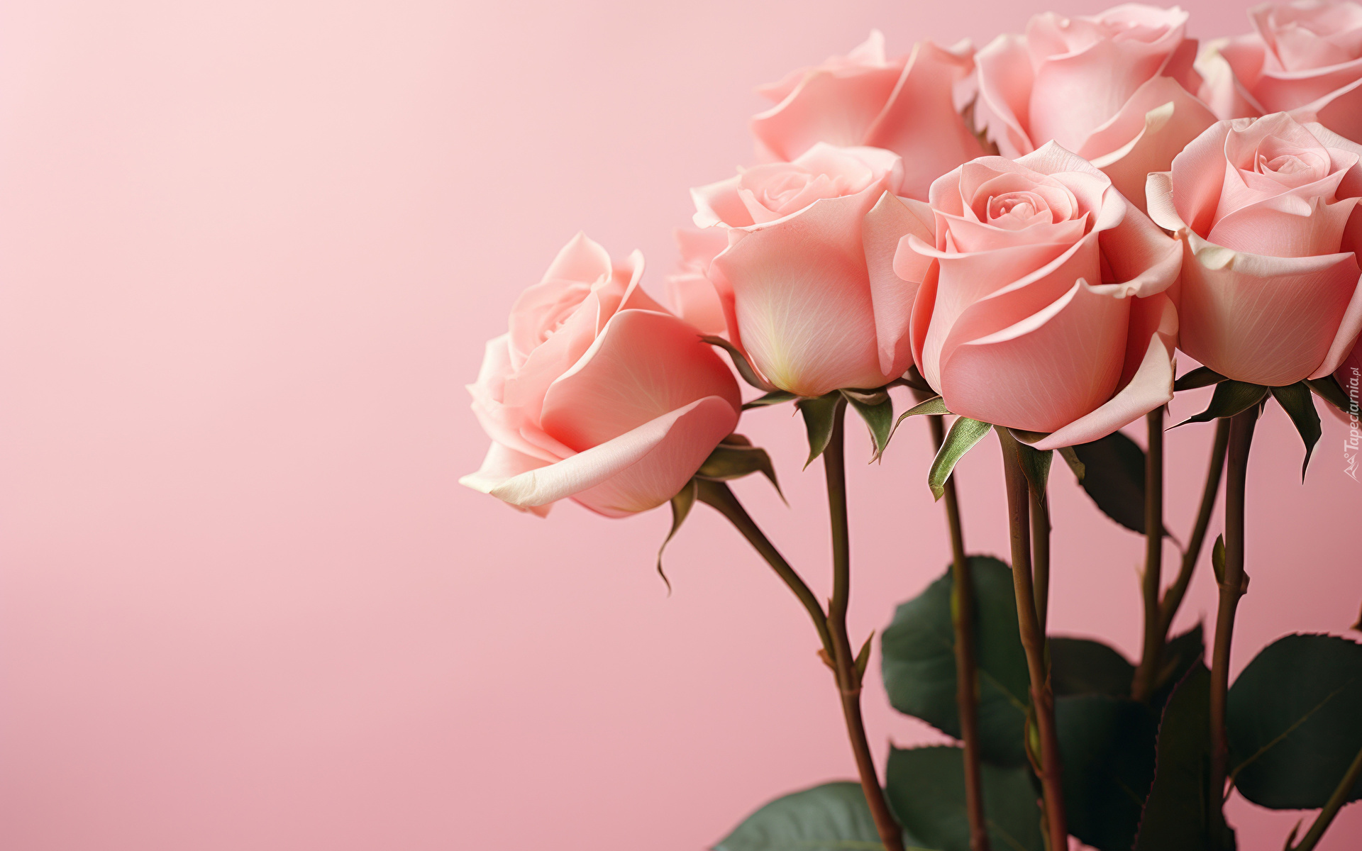 Edytor tapety: Różowe róże na różowym tle