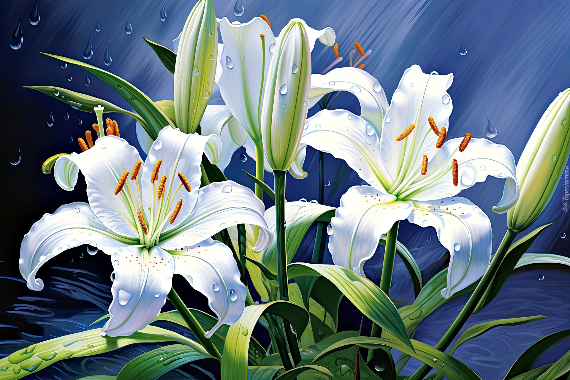 Edytor tapety: Krople wody na białych liliach
