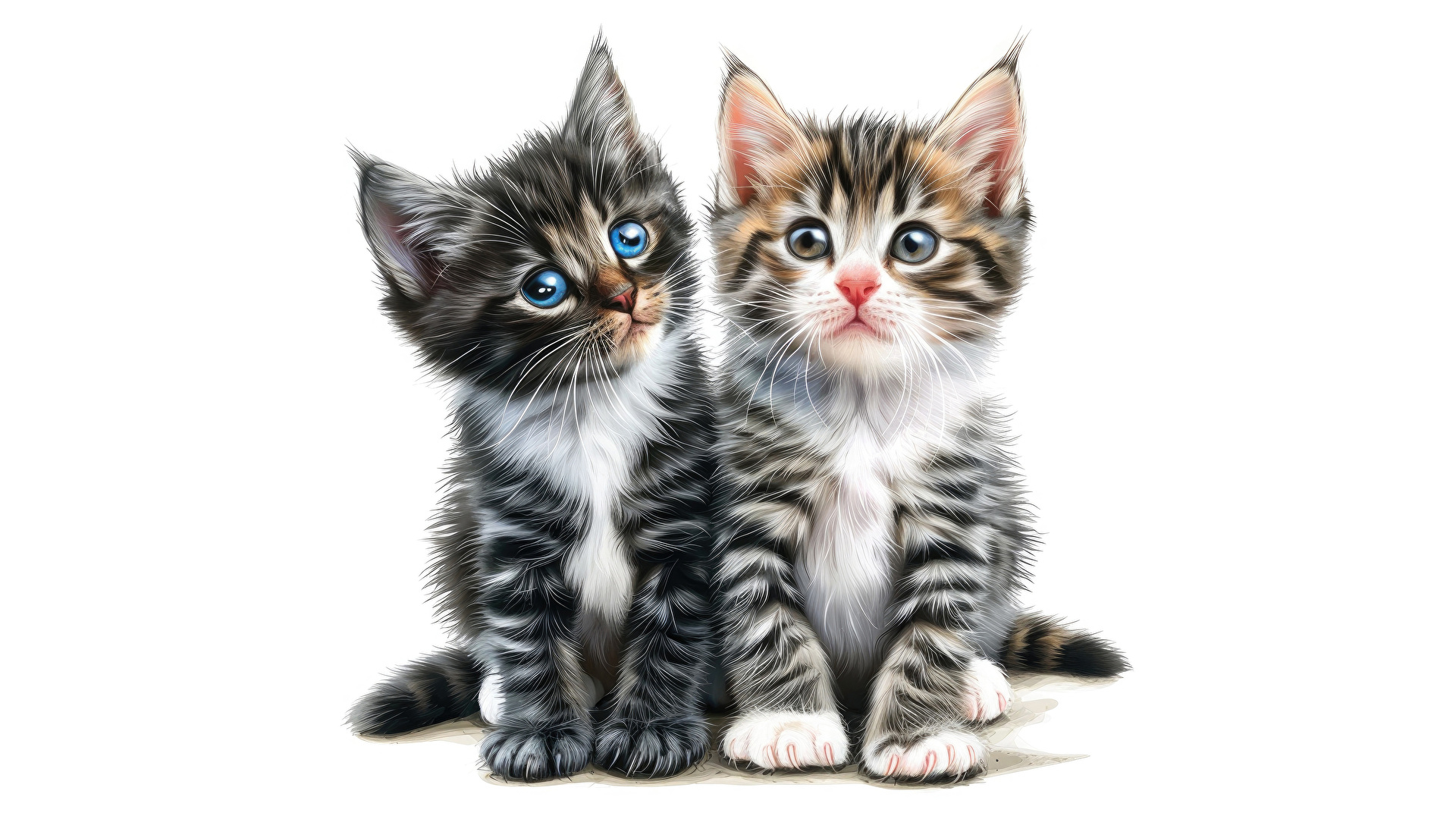 Edytor tapety: Dwa małe kotki na białym tle w grafice