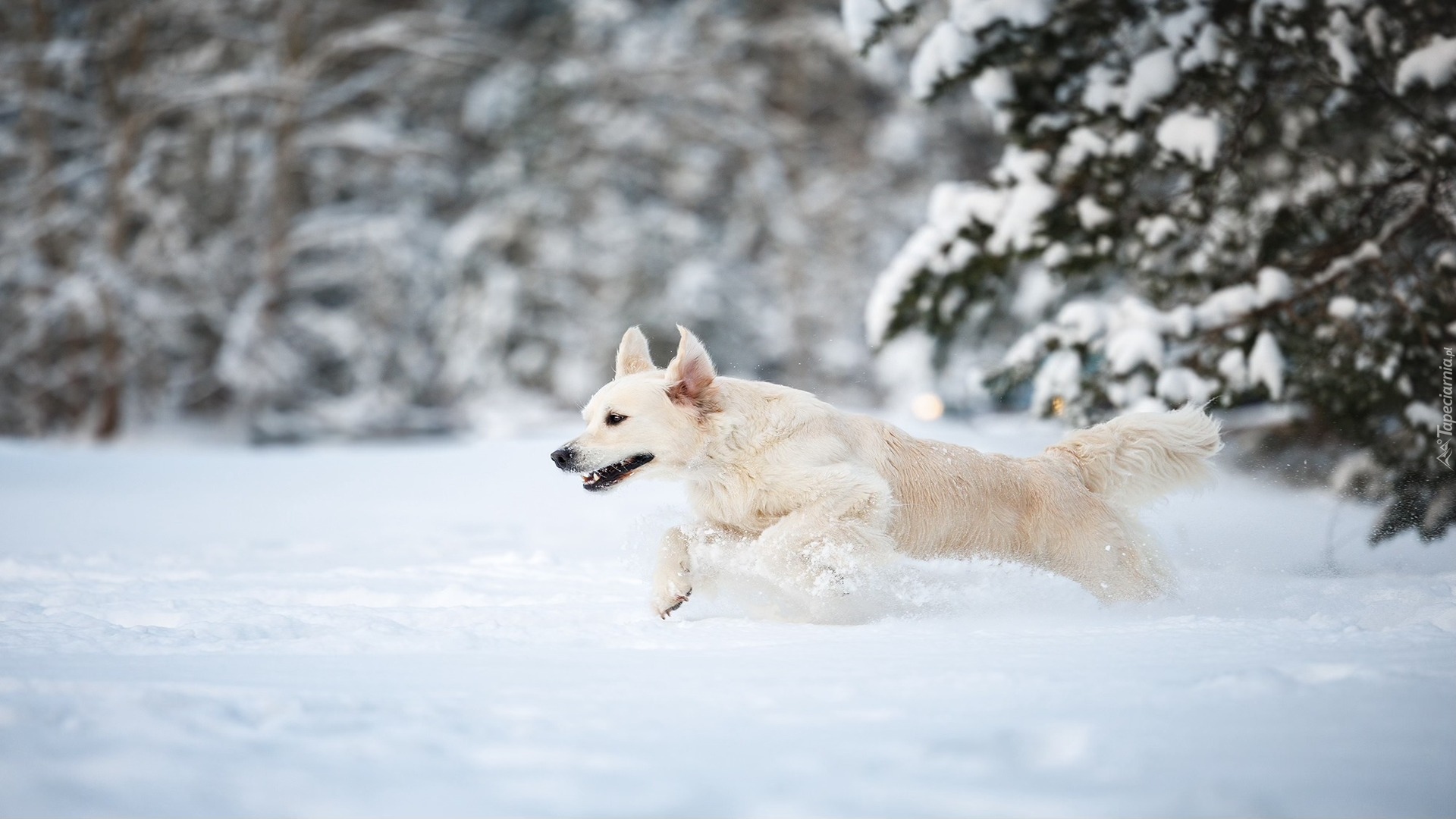 Edytor tapety: Golden retriever na śniegu