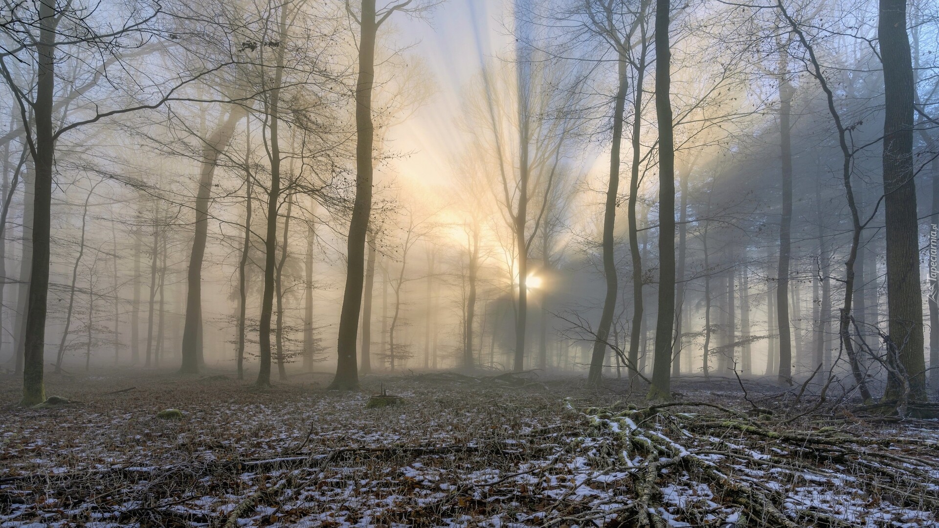 Edytor tapety: Rozproszone światło słoneczne w lesie