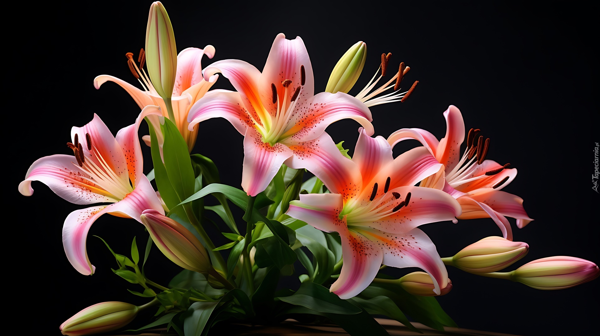 Edytor tapety: Lilie z pąkami na czarnym tle w grafice